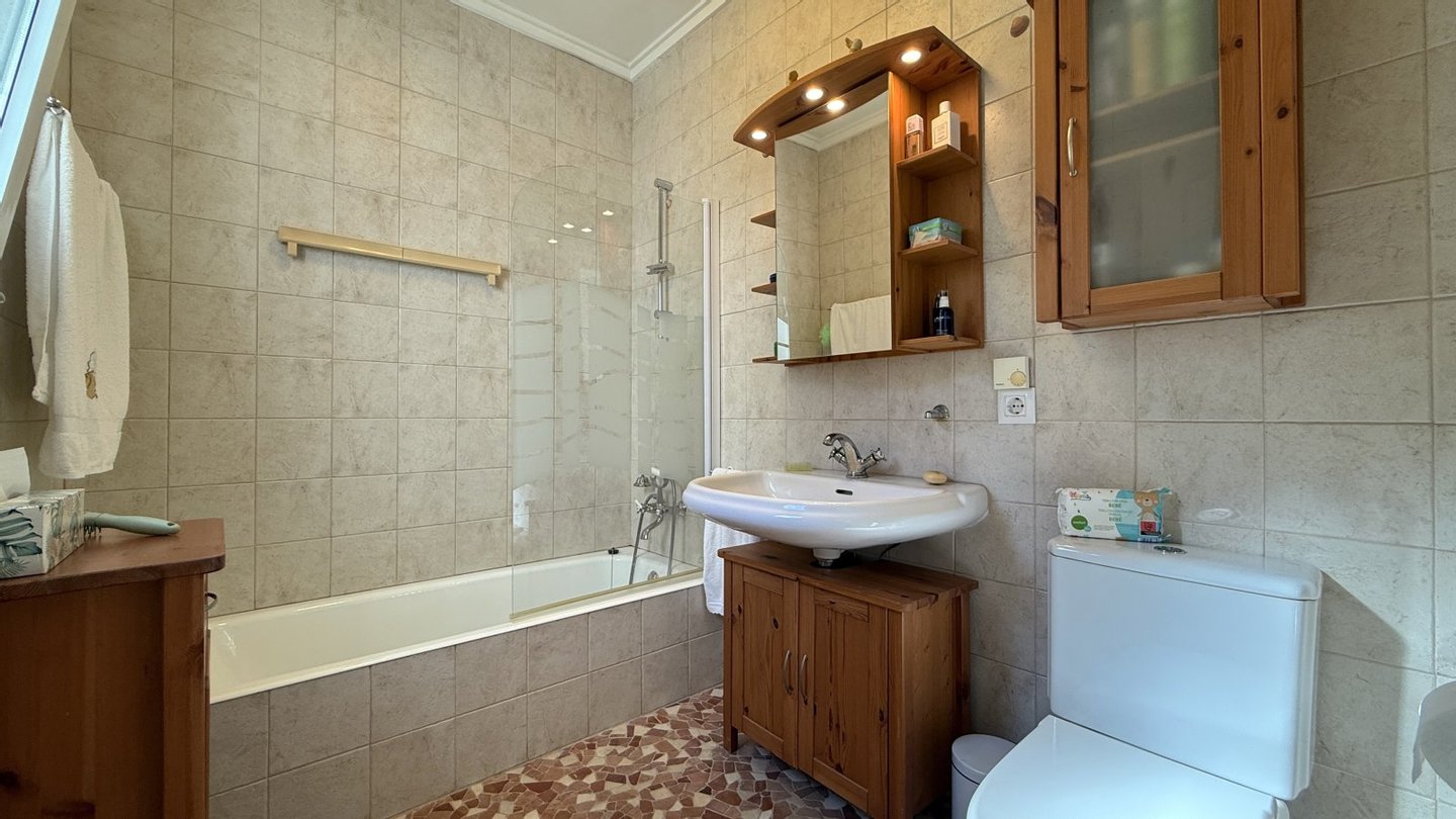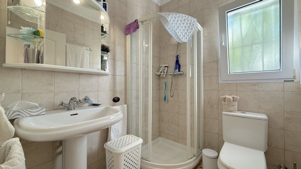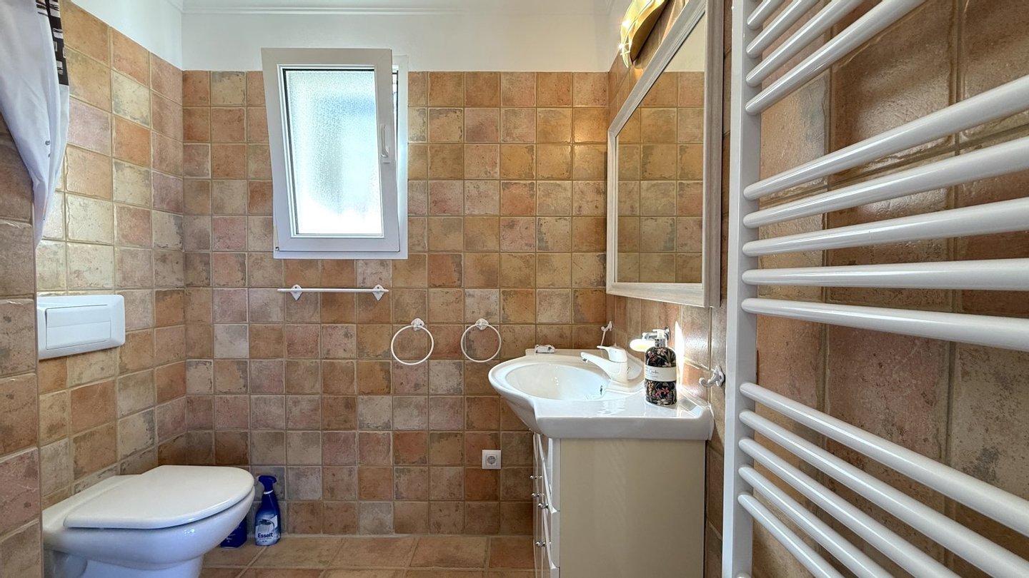 Sehr gute Ausstattung, Massivbauweise, Fliesenböden, Isolierglasfenster aus PVC mit Doppelverglasung, Elektroheizung, 3 Klimaanlagen w/k, Einbauschränke, Einbauküche, überdachte Terrasse, PKW-Stellplatz, PV Anlage, Hauswirtschaftsraum, 3 Badezimmer,