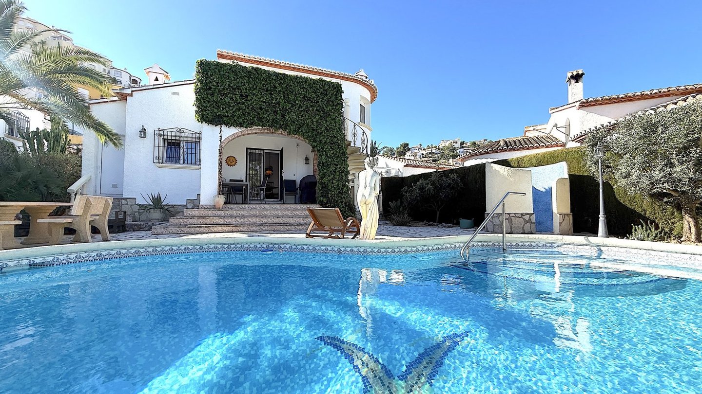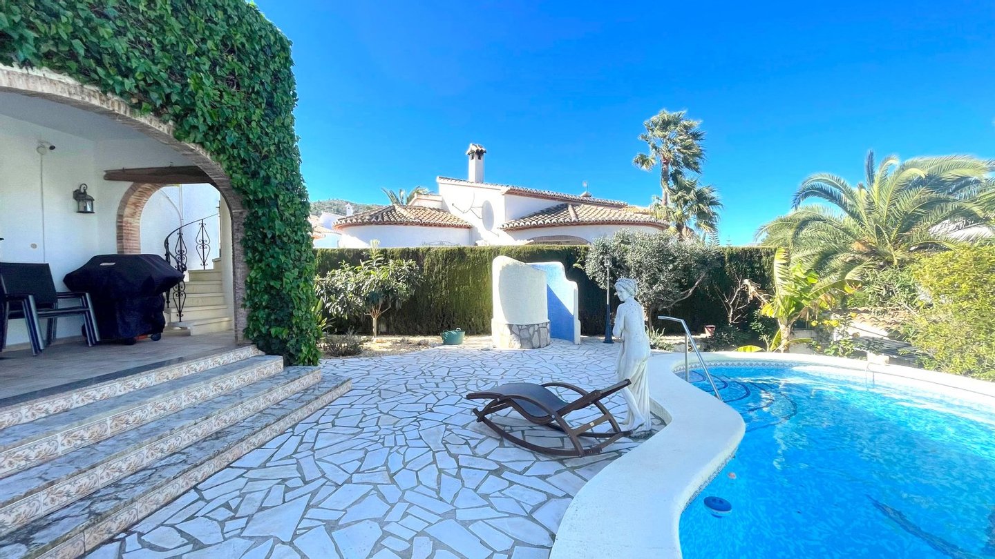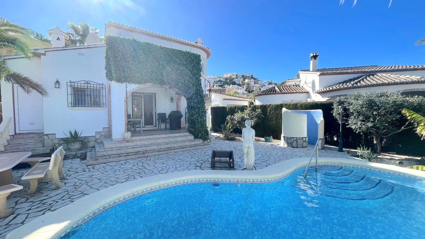 Ein tolles Haus mit einer super Ausstattung erwartet Sie. Diese im typisch spanischen Stil erstellte Villa bietet Ihnen alles was man sich für einen schönen Urlaub wünschen kann. Die ruhige Wohnlage und die Meersicht vom Obergeschoss wird Sie beeindrucken. Insgesamt verfügt die Villa über 3 Schlafzimmer und 3 Badezimmer, eine Einbauküche, ein Wohn-Esszimmer sowie über einen Hauswirtschaftsraum, in dem sich die Waschmaschine und die Haustechnik befindet. Das Grundstück ist uneinsehbar und sehr privat. Der Pool kann mit einer Wärmepumpe beheizt werden. Um Strom zu sparen befindet sich eine PV Anlage auf dem Dach. Das Auto kann auf dem Grundstück parkiert werden. Also rundum ein super Angebot für alle die ein Ferienhaus oder eine Kapitalanlage suchen. Das Haus lässt sich gut vermieten.