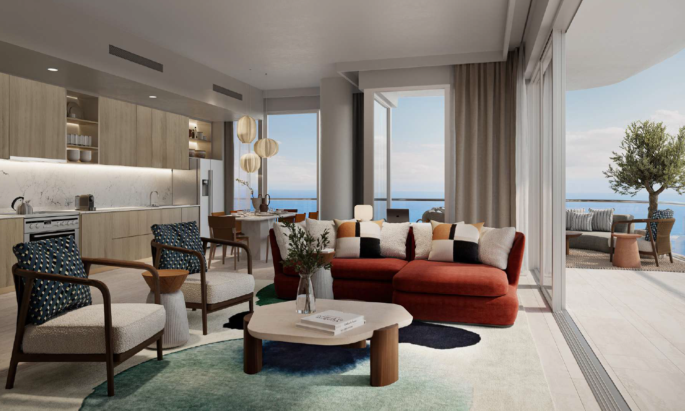 Draußen bietet ein privater Balkon den perfekten Ort, um sich zu entspannen und den Klang der Wellen zu genießen, die gegen die Küste schlagen. Die Bewohner dieses exklusiven Anwesens haben außerdem Zugang zu einer Reihe von Annehmlichkeiten, darunter ein Swimmingpool, ein Fitnesscenter und ein 24-Stunden-Sicherheitsdienst.