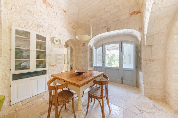 This villa represents an extraordinary example of skilful and conservative renovation of a sixteenth-century building. The property has been restored to its splendor with great care and attention to detail. The structure includes lamias, turrets and Saracen trulli, all built with the traditional technique of dry construction using local limestone, to keep the historical authenticity intact.