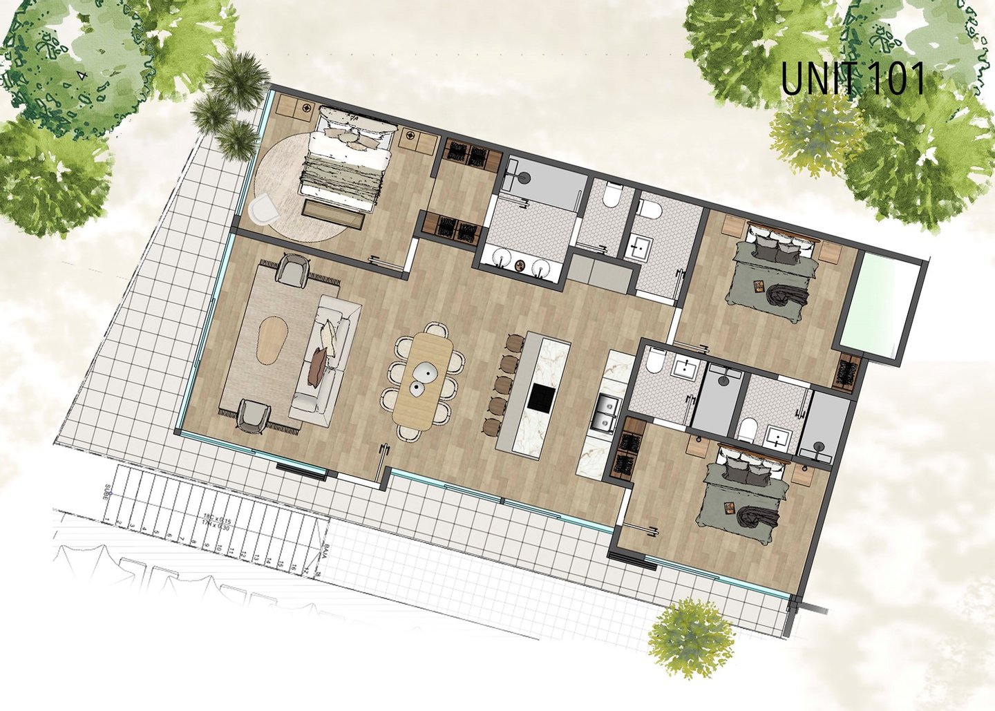 - Einheit 104 – 3BD/3BA – 1.500.000 $ – 1646 Fuß – Meerblick