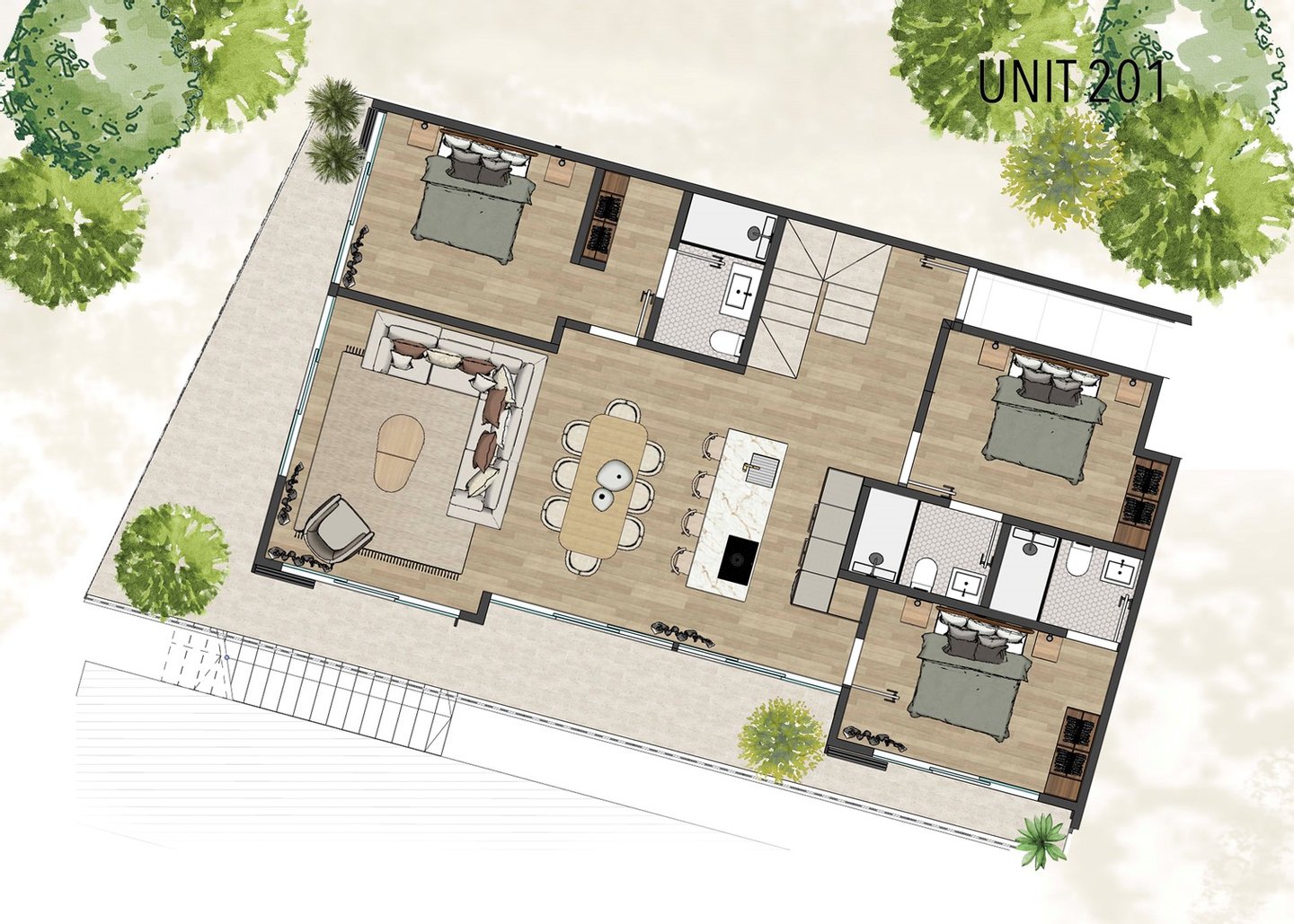 - Einheit 203 – 4BD/4,5BA – 2.300.000 $ – 3165 Fuß – Meerblick