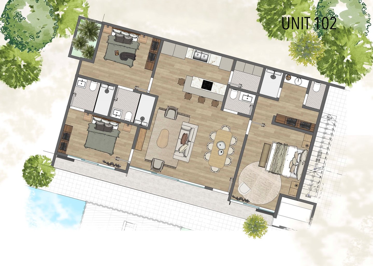 - Einheit 105 – 3BD/3,5BA – 1.900.000 $ – 1604 Fuß – Meerblick