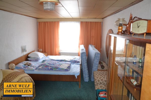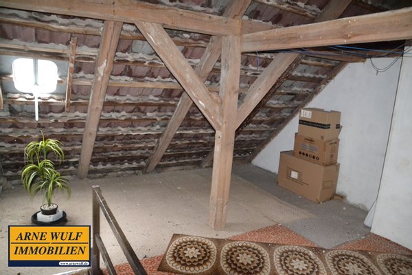 Das Haus verfügt über ca. 109 m² Wohnfläche, verteilt auf 1,5 Etagen, und bietet insgesamt 5 Zimmer, die flexibel als Wohn-, Schlaf-, Arbeits- oder Gästezimmer genutzt werden können. Ein Badezimmer ist vorhanden. Im Obergeschoss befinden sich ein weiteres beheizbares Zimmer. Ergänzend steht eine großzügige Nutzfläche von ca. 165 m² zur Verfügung, die vielfältige Möglichkeiten für Lager, Hobby, Werkstatt oder weitere Ausbauten eröffnet – je nach individuellem Bedarf und Konzept. Die Küche und das Badezimmer sind gefliest. Die Wärme‑ und Warmwasserversorgung erfolgt über eine Ölheizung, die Wasserversorgung über das zentrale örtliche Netz. Im Gebäude befindet sich eine Werkstatt in dem sich früher eine Büttnerei befand.