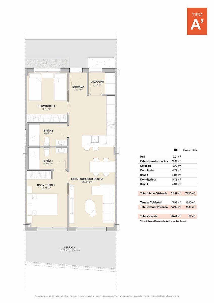 Diese modernen Appartements verfügen über eine konstruierte Fläche von ca. 87 m² - 104 m² (verschiedene Modelle, inklusive Terrassen) mit