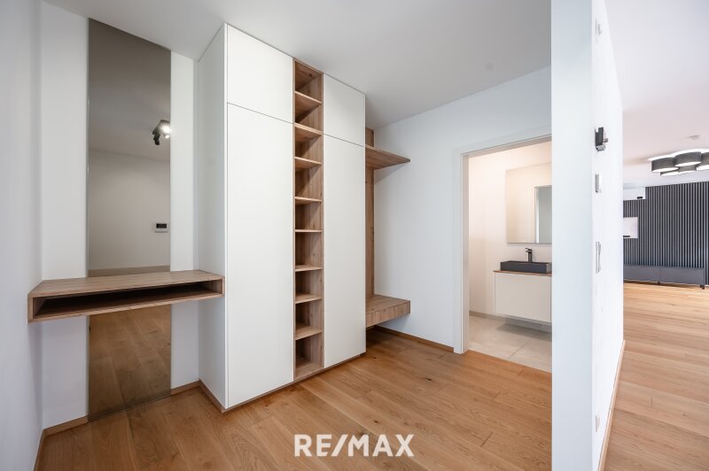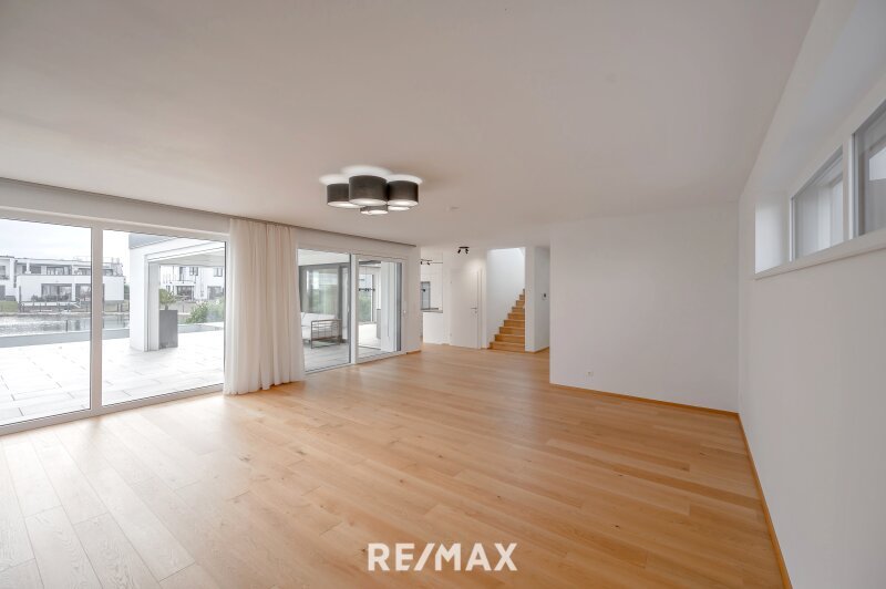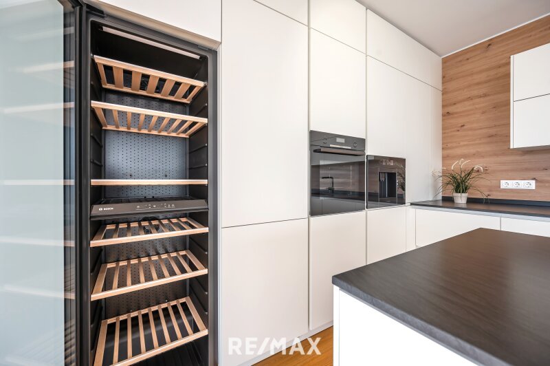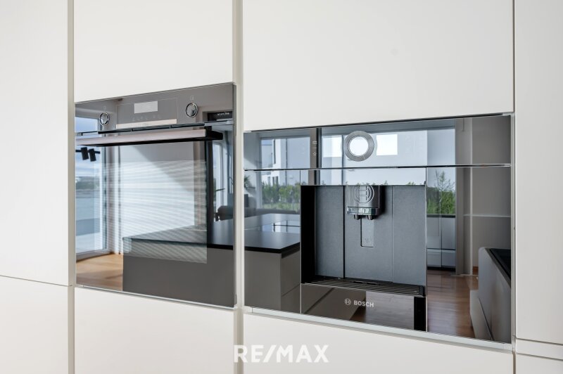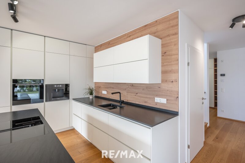 Schon beim Betreten der Villa empfängt der eindrucksvolle Eingangsbereich mit Garderobe und elegantem Gäste-WC ein Gefühl von Großzügigkeit. Der weitläufige Wohn- und Essbereich öffnet sich über große Schiebetüren nahtlos zur Sonnenterrasse – im Sommer verschmelzen Innen und Außen zu einem einzigen, luftigen Lebensraum. Die moderne, voll ausgestattete Einbauküche mit hochwertigen und modernen Geräten (BOSCH) erfüllt höchste Ansprüche und lädt zum Genießen, Kochen und Zusammensein ein (Induktionsherd, eingebaute Kaffeemaschine, Backofen in Augenhöhe, Weinschrank etc.).