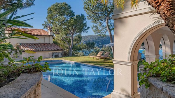 Diese charmante Immobilie liegt an der Westseite des Cap Ferrat in einer privilegierten Umgebung und überblickt die Bucht von Villefranche und bietet einen privilegierten Blick auf das Meer und die Berge. Auf einem über 2000 m2 großen mediterranen Grundstück umfasst die Immobilie eine Hauptvilla und ein Gästehaus, die durch ein flaches Grundstück und einen angenehmen Pool voneinander getrennt sind.