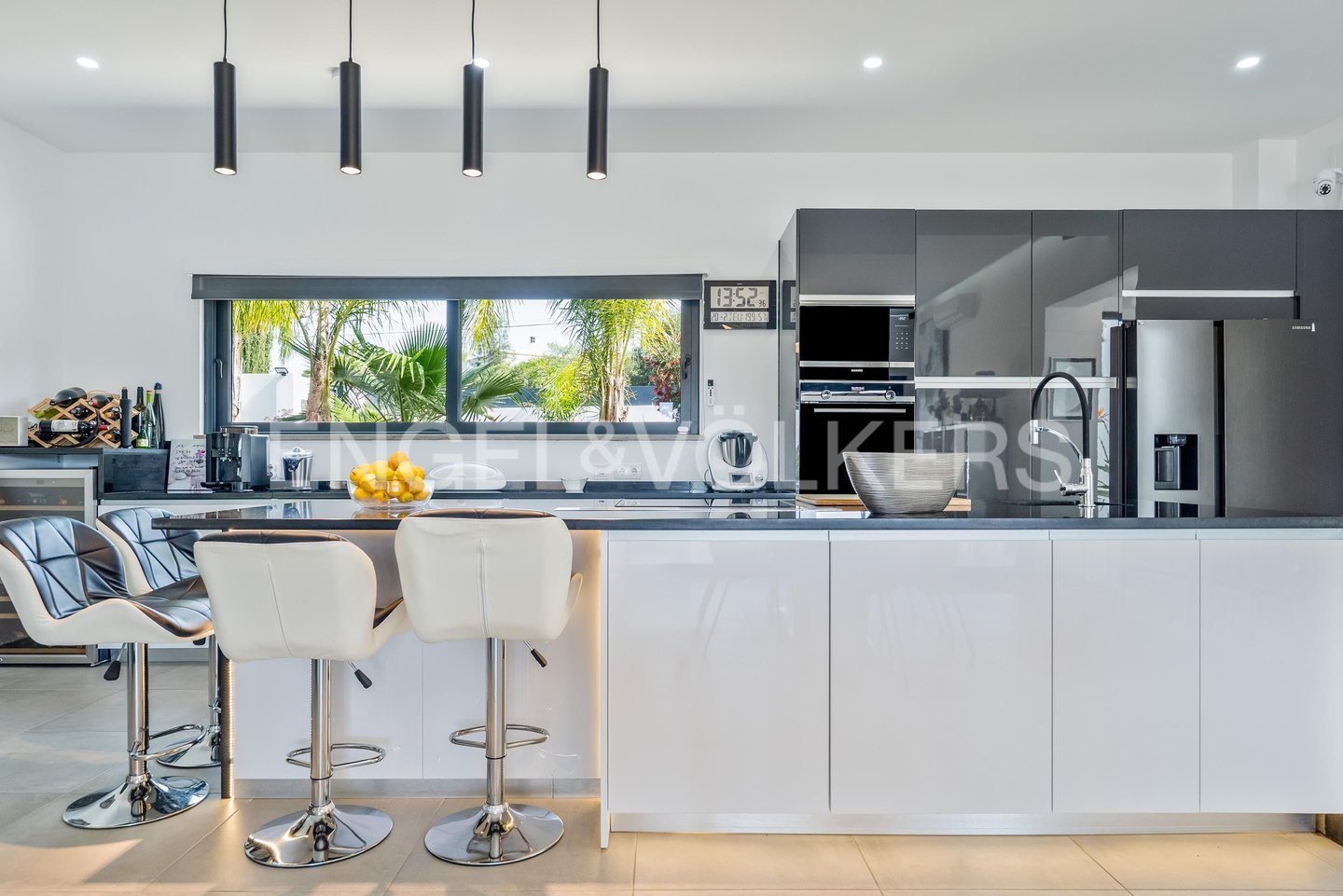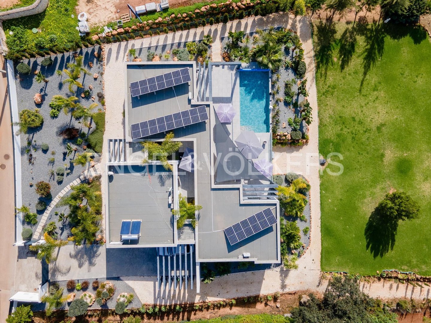 Das gesamte Haus ist mit einer LG-Klimaanlage der neuesten Generation ausgestattet, die über das Smartphone gesteuert werden kann. Ein automatisches Bewässerungssystem, ein 120 Meter langer Bohrbrunnen zur Bewässerung des Gartens, Solar-Kameras und ein Alarmsystem sorgen für Sicherheit und Energieeffizienz gleichermaßen.