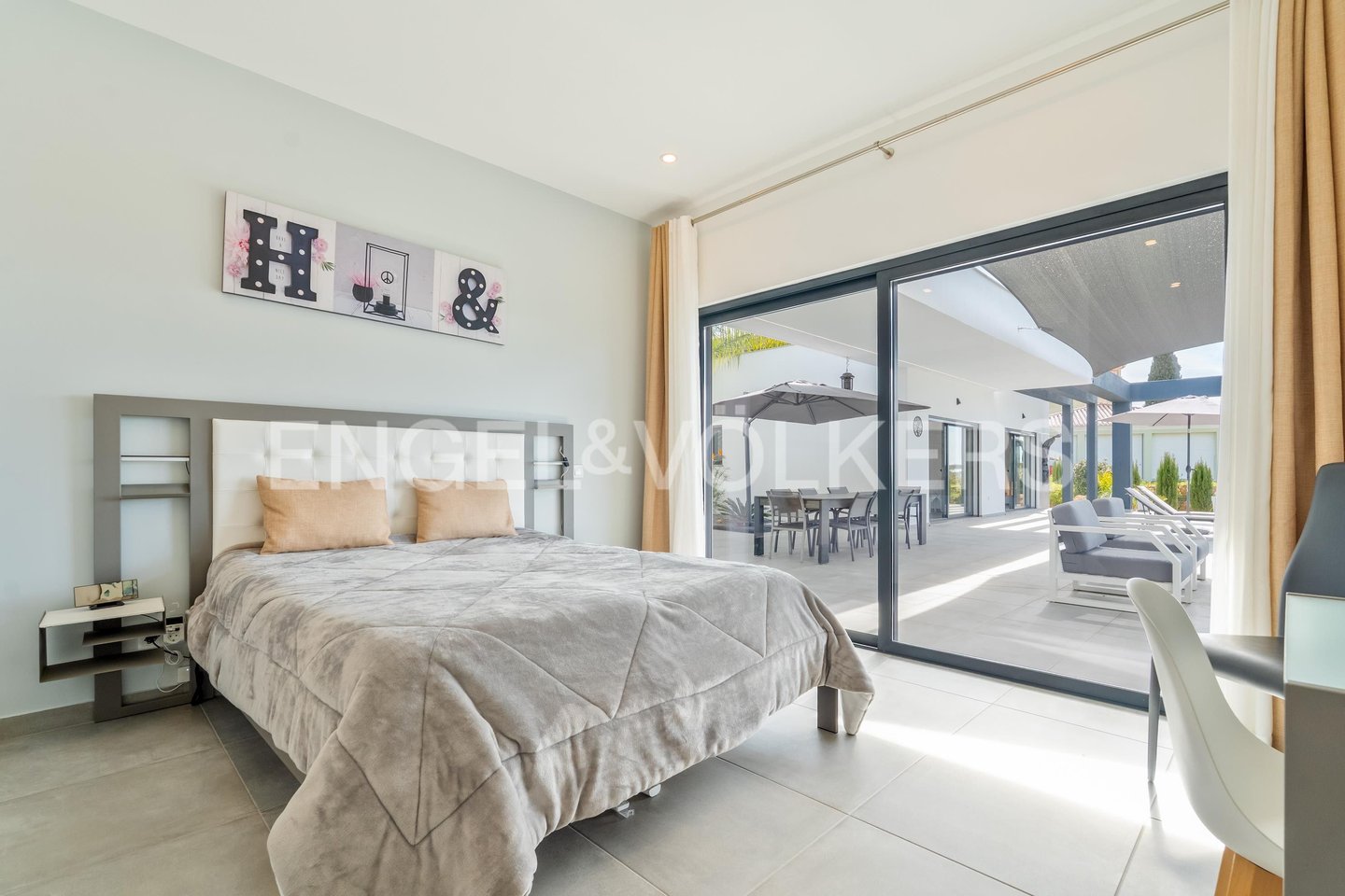 Die Inneneinrichtung wurde sorgfältig durchdacht, um ein funktionales und harmonisches Raumangebot zu bieten. Das Haus verfügt über vier elegante Schlafzimmer, jedes mit einem eigenen Badezimmer en suite, das den absoluten Komfort garantiert. Die Master-Suite mit ihren Einbauschränken ist ein wahres Meisterwerk, während das offene Badezimmer einen Hauch von Außergewöhnlichkeit verleiht.