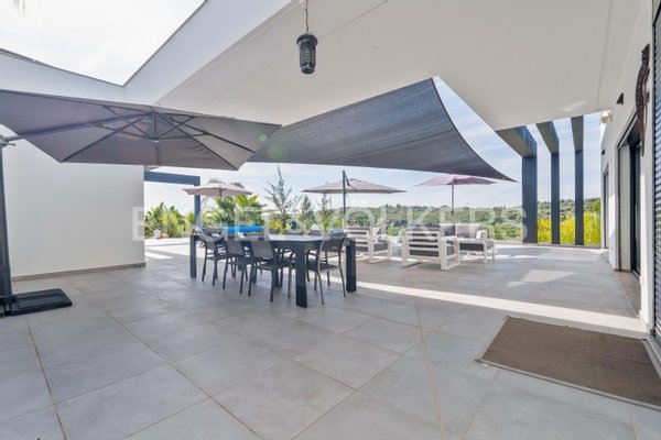 Die Inneneinrichtung wurde sorgfältig durchdacht, um ein funktionales und harmonisches Raumangebot zu bieten. Das Haus verfügt über vier elegante Schlafzimmer, jedes mit einem eigenen Badezimmer en suite, das den absoluten Komfort garantiert. Die Master-Suite mit ihren Einbauschränken ist ein wahres Meisterwerk, während das offene Badezimmer einen Hauch von Außergewöhnlichkeit verleiht.