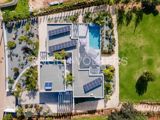 Das gesamte Haus ist mit einer LG-Klimaanlage der neuesten Generation ausgestattet, die über das Smartphone gesteuert werden kann. Ein automatisches Bewässerungssystem, ein 120 Meter langer Bohrbrunnen zur Bewässerung des Gartens, Solar-Kameras und ein Alarmsystem sorgen für Sicherheit und Energieeffizienz gleichermaßen.