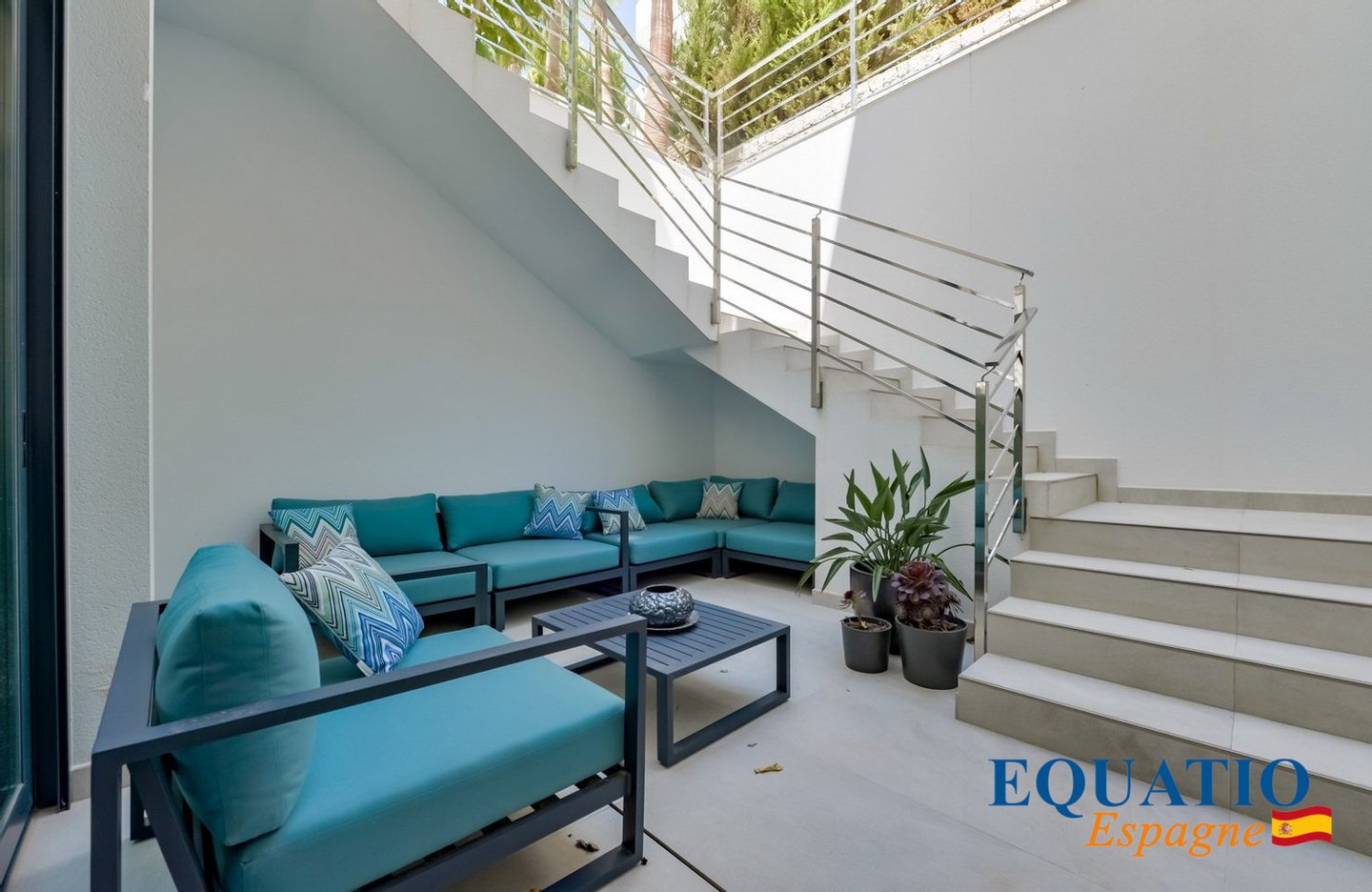 Mehrere Terrassen und angelegter Garten mit automatischer Bewässerung