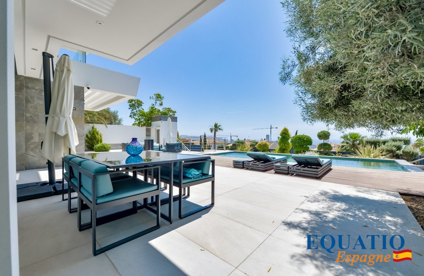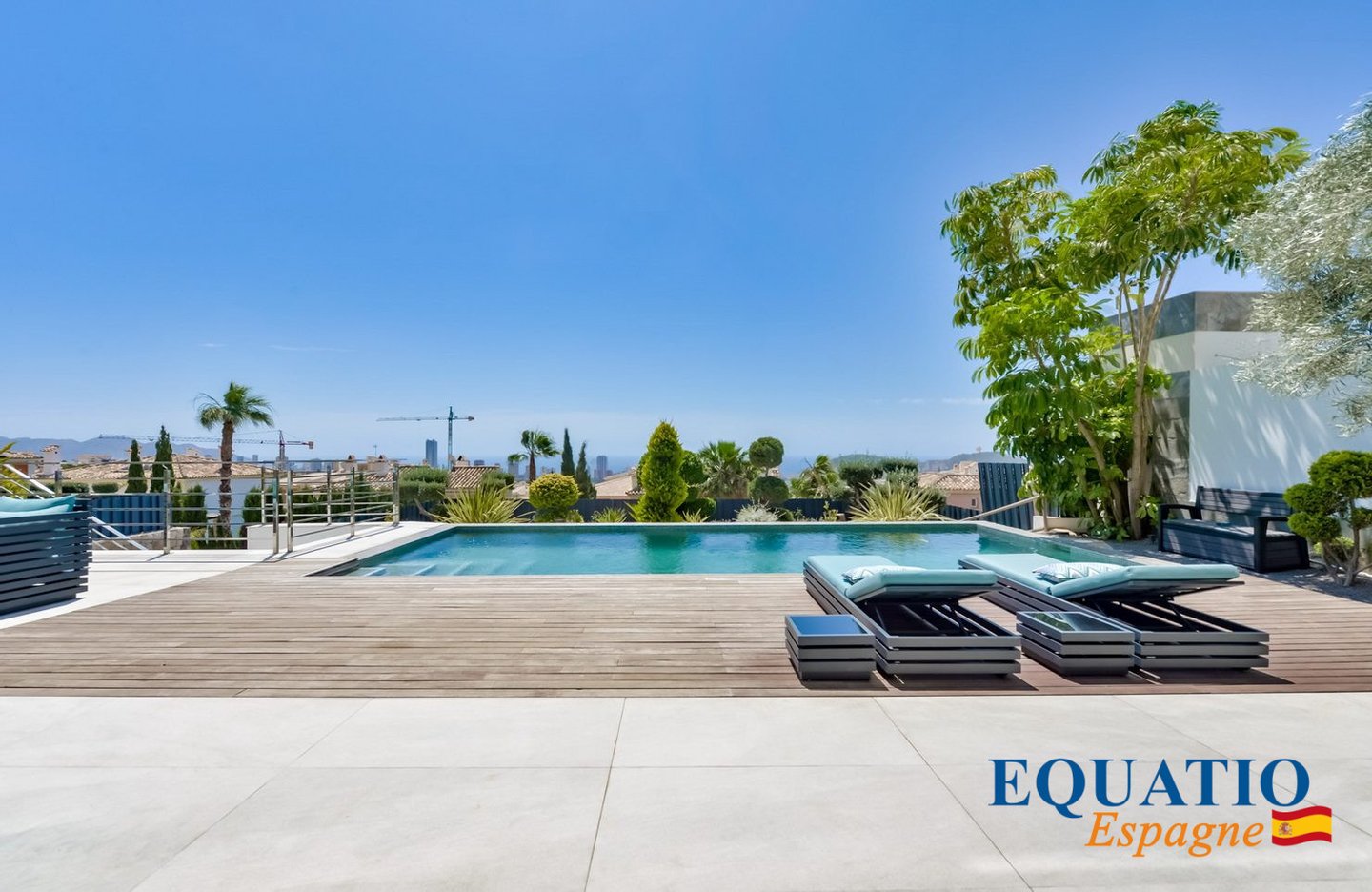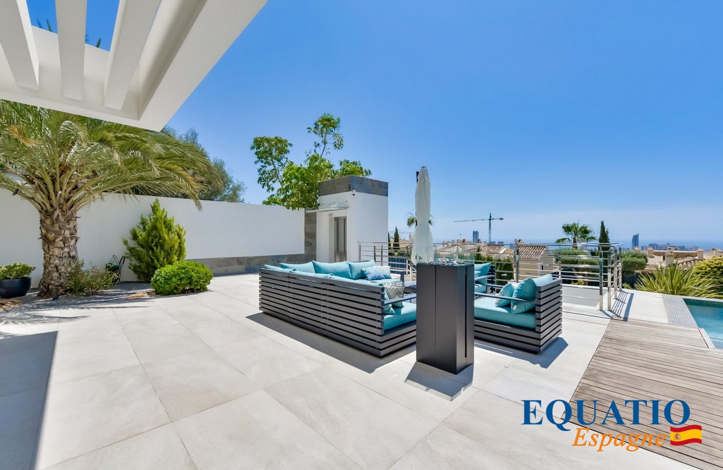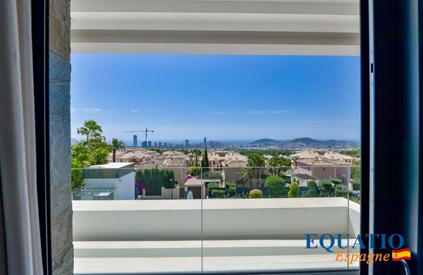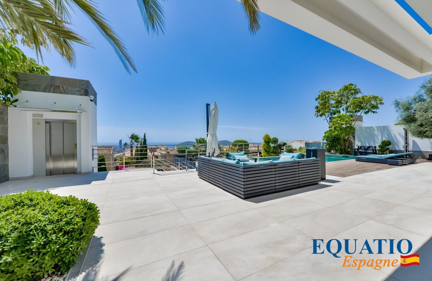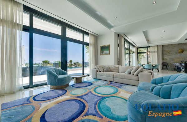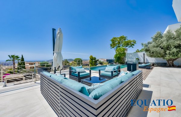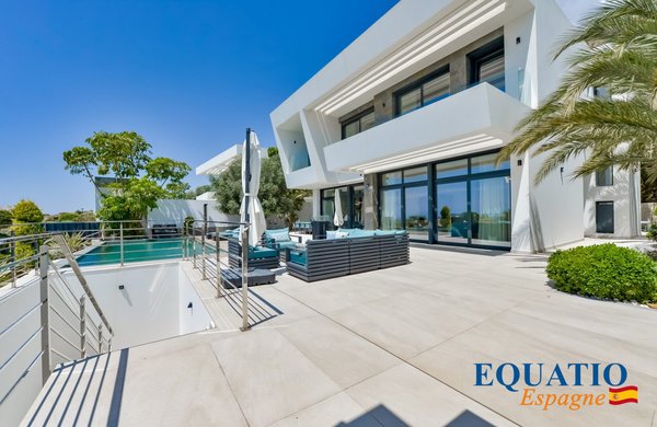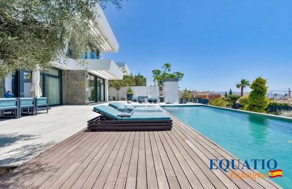 PRÄCHTIGE Villa mit zeitgemäßem architektonischem Design, die atemberaubende Ausblicke auf das Meer und die Berge bietet.