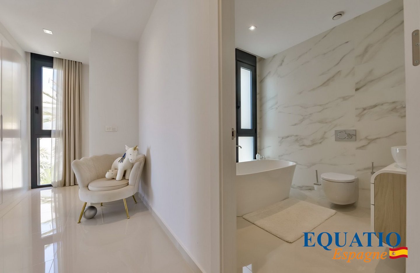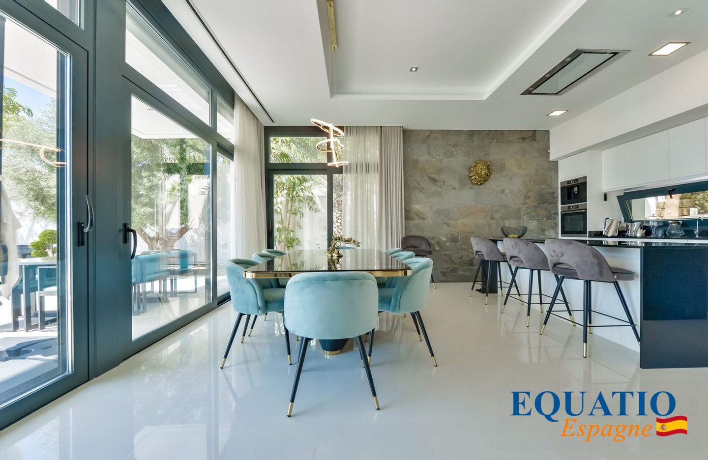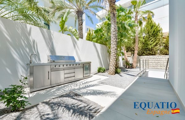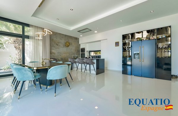 Das Innere ist mit hochwertigen Materialien ausgestattet und mit Markengeräten ausgestattet, was die Funktionalität und den Stil der Villa verbessert.