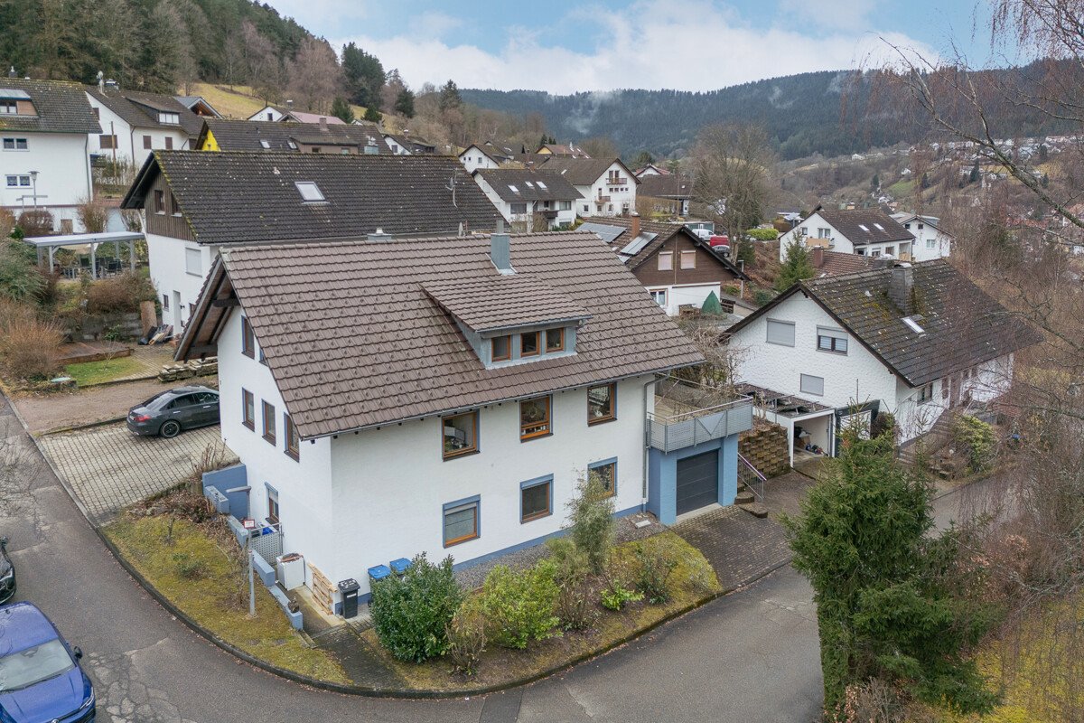 Dieses gepflegte Zweifamilienhaus in Hanglage in Alpirsbach bietet mit ca. 230 m² Wohnfläche und insgesamt 9 Zimmern hervorragende Voraussetzungen für vielfältige Wohnkonzepte – ideal für Familien, Mehrgenerationenwohnen oder die Kombination aus Eigennutzung und Vermietung.