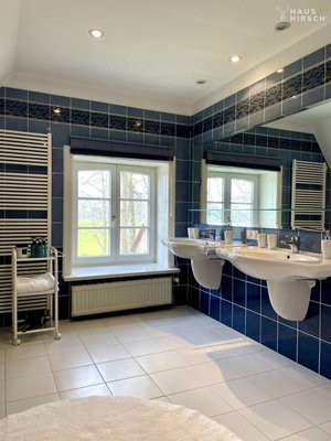 Der großzügige Wohnbereich kann vielseitig zum gemeinsamen Entspannen oder Arbeiten genutzt werden. Hier finden Sie alles, was das Herz von Paaren und Familien höherschlagen lässt. Als Highlights dieses in gehobener Qualität ausgebauten Landhauses lassen sich das 150m² große Wohnzimmer mit Kamin und Bibliothek, die mehreren gehobenen Bäder, ein separates Häuschen mit Sauna sowie das wunderschöne Grundstück mit Rondell im Auffahrtsbereich aufführen.