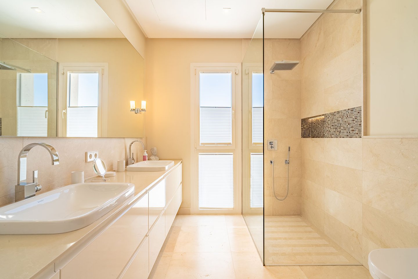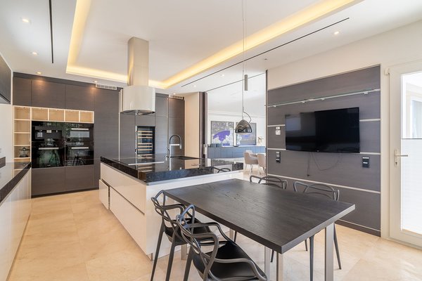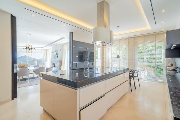 Diese großartige moderne Villa liegt im oberen Bereich des mondänen Villenviertels Montport oberhalb von Port Andratx und verfügt über einen sensationellen Panoramablick über die Bucht und die Halbinsel La Mola bis auf das Meer. Das helle, offene Anwesen, erbaut in bester Bauqualität, verfügt im Erdgeschoß über ein sehr geräumiges Wohnzimmer mit angrenzendem Esszimmer, eine moderne, offene Luxusküche und Zugang zu mehreren großzügigen überdachten und freien Terrassen, darunter die Poolterrasse. Ein Schlafzimmer mit Ankleide und Bad en Suite, ein Gäste-WC, ein Gastro-Kühlraum, ein Abstellraum sowie eine geräumige Doppelgarage vervollständigen die Hauptwohnebene. Eine große Mastersuite mit Ankleidebereich und spektakulärem Hafen- und Panoramablick von der privaten Terrasse aus, drei weitere Schlafzimmersuiten, eine davon mit Ankleide und eine weitere mit großer Freiterrasse befinden sich im Obergeschoß. Das Untergeschoß bietet den exklusiven SPA-Bereich mit Sauna, Fitnessraum, Duschraum, Ruheraum sowie mehrere Wirtschafts- und Technikräume. Auch der Außenbereich mit einem mediterran gestalteten Gartenbereich und stimmungsvollen Terrassenbereichen mit Infinity Pool bietet, neben einem atemberaubenden Blick auf das Meer und die Bergwelt des Tramuntana-Gebirges, Lebensqualität auf höchstem Niveau.
