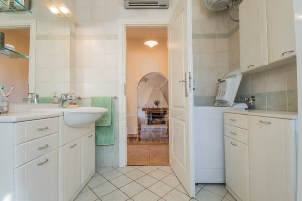 Auf einem Hügel in einem istrischen Ort nahe Poreč steht dieses gepflegte Einfamilienhaus mit weitem Panoramablick auf das Meer. Die Strände erreichen Sie nach rund 10.000 m. Einkaufsmöglichkeiten, Schule und Stadtzentrum sind gut angebunden. Obwohl das Haus baulich als Doppelhaushälfte ausgeführt ist, nutzen Sie eine eigene Zufahrt und einen separaten Zugang. Das sorgt für spürbare Privatsphäre. Auf dem 400 m² großen Grundstück stehen gepflasterte Stellflächen und eine Garage zur Verfügung.