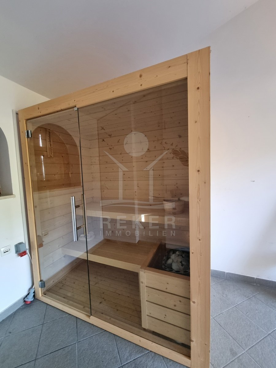 Wohnen auf einer Ebene mit 2 Schlafzimmern, Kamin im Wohnzimmer und neu angeschaffter Sauna in der Garage – hier genießen Sie durchdachten Komfort. Die Klimaanlage sorgt ganzjährig für angenehmes Raumklima. Der gepflegte Garten mit rund 300 m²