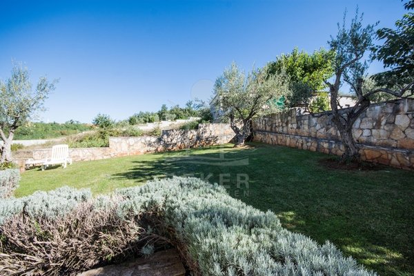 Der Außenbereich umfasst etwa 300 m² Gartenfläche. Mediterrane Pflanzen und Rasen wechseln sich mit gepflasterten Bereichen ab. Die großzügige Terrasse mit Grillzone schließt direkt an den Wohnraum an. Von hier aus genießen Sie einen freien, unverbaubaren Blick auf das Meer. Die Südwest-Ausrichtung bringt Sonne bis in die Abendstunden. Zusätzlich können Sie einen kleineren Pool errichten, sowohl für den Eigenbedarf als auch für eine touristische Nutzung.