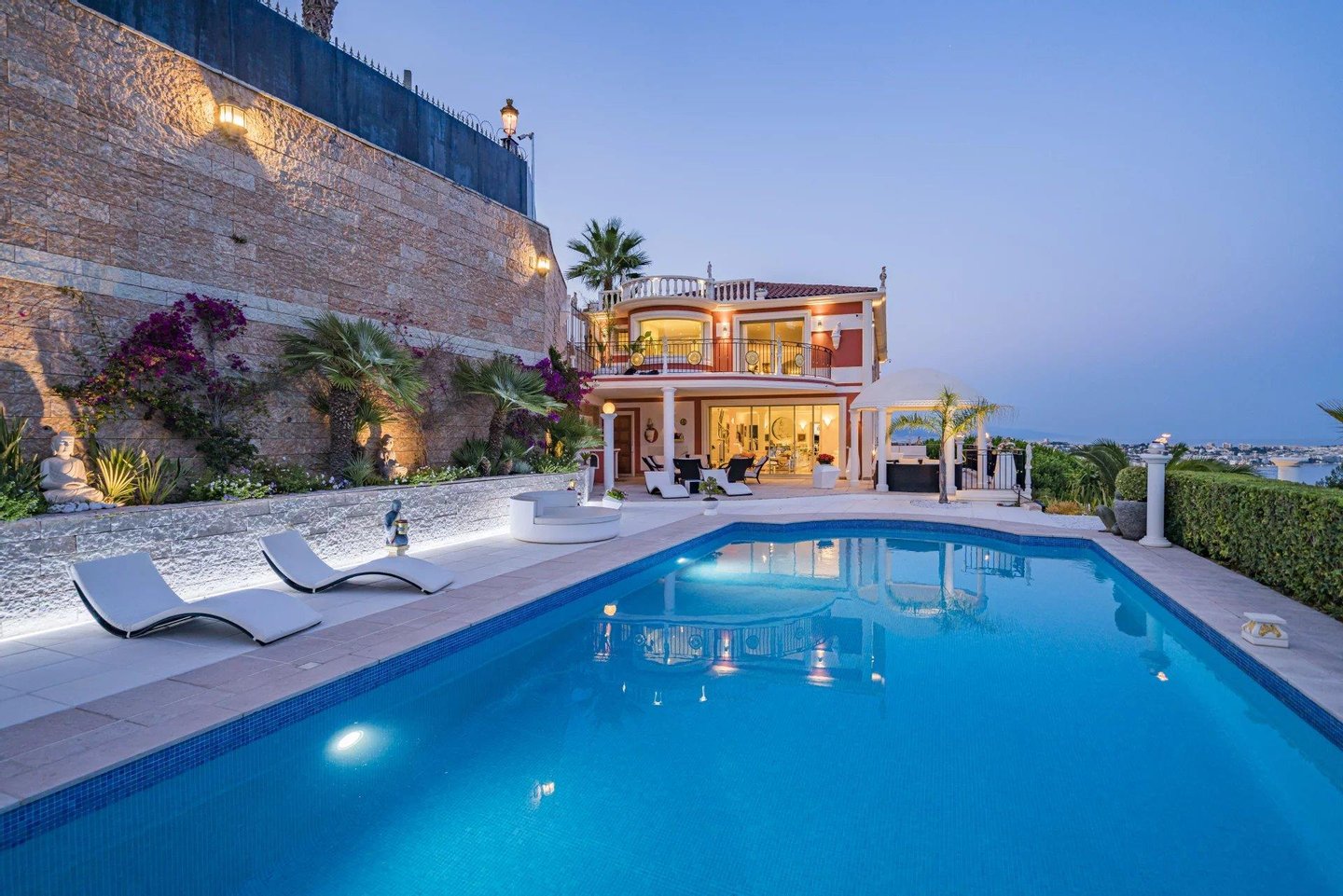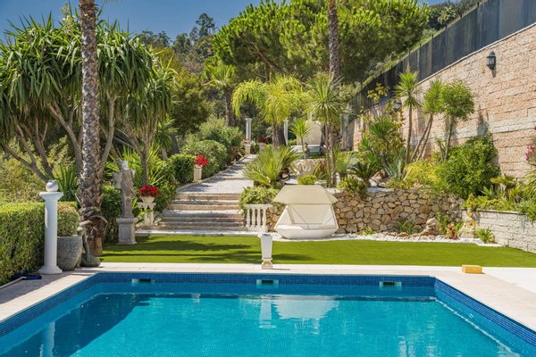 Auf einem wunderschönen, gärtnerisch gestalteten Grundstück von 2.274 m² verfügt die Immobilie über großzügige Terrassen, einen sonnigen Poolbereich und totale Privatsphäre in einer naturbelassenen Umgebung am Rand eines 20 Hektar großen Parks.