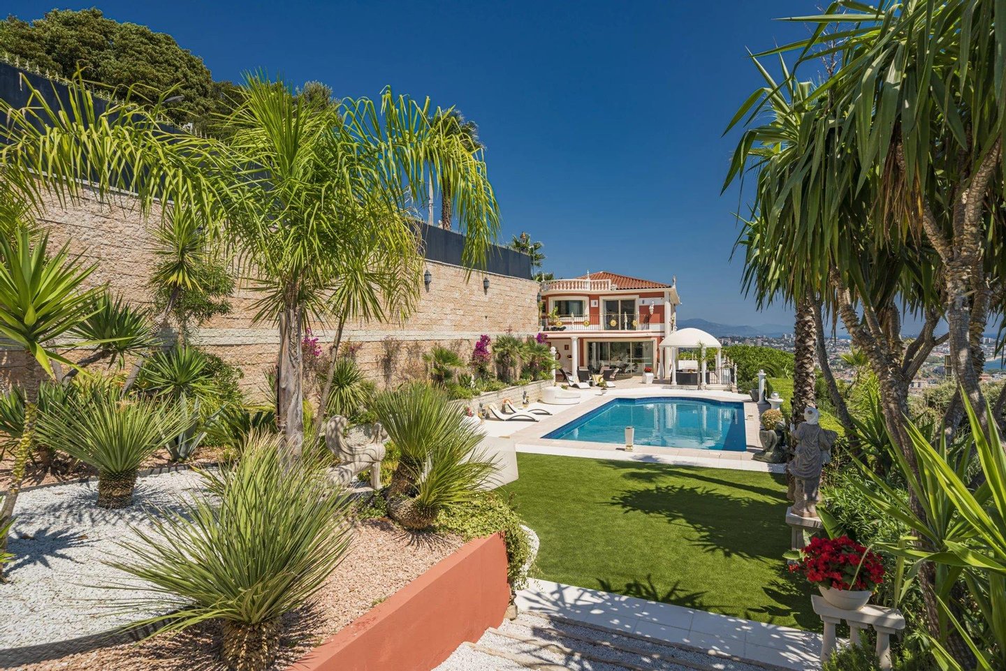 In dem prestigösen und ruhigen Viertel von Super Cannes bietet diese elegante Villa mit 480 m² eine spektakuläre Meerblicksicht, die sich von den Alpen über die Îles de Lérins bis hin zum Cap Ferrat und Cap d’Antibes erstreckt.