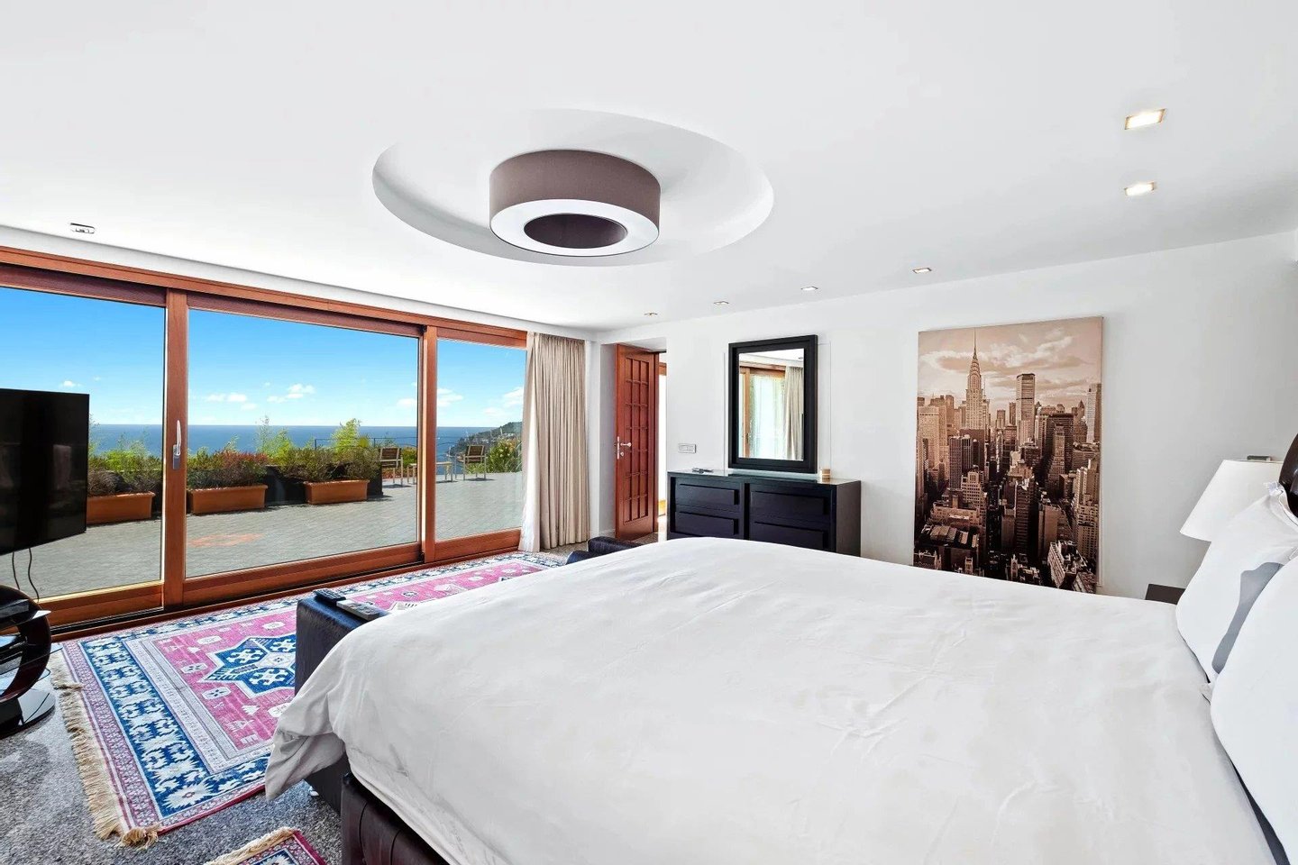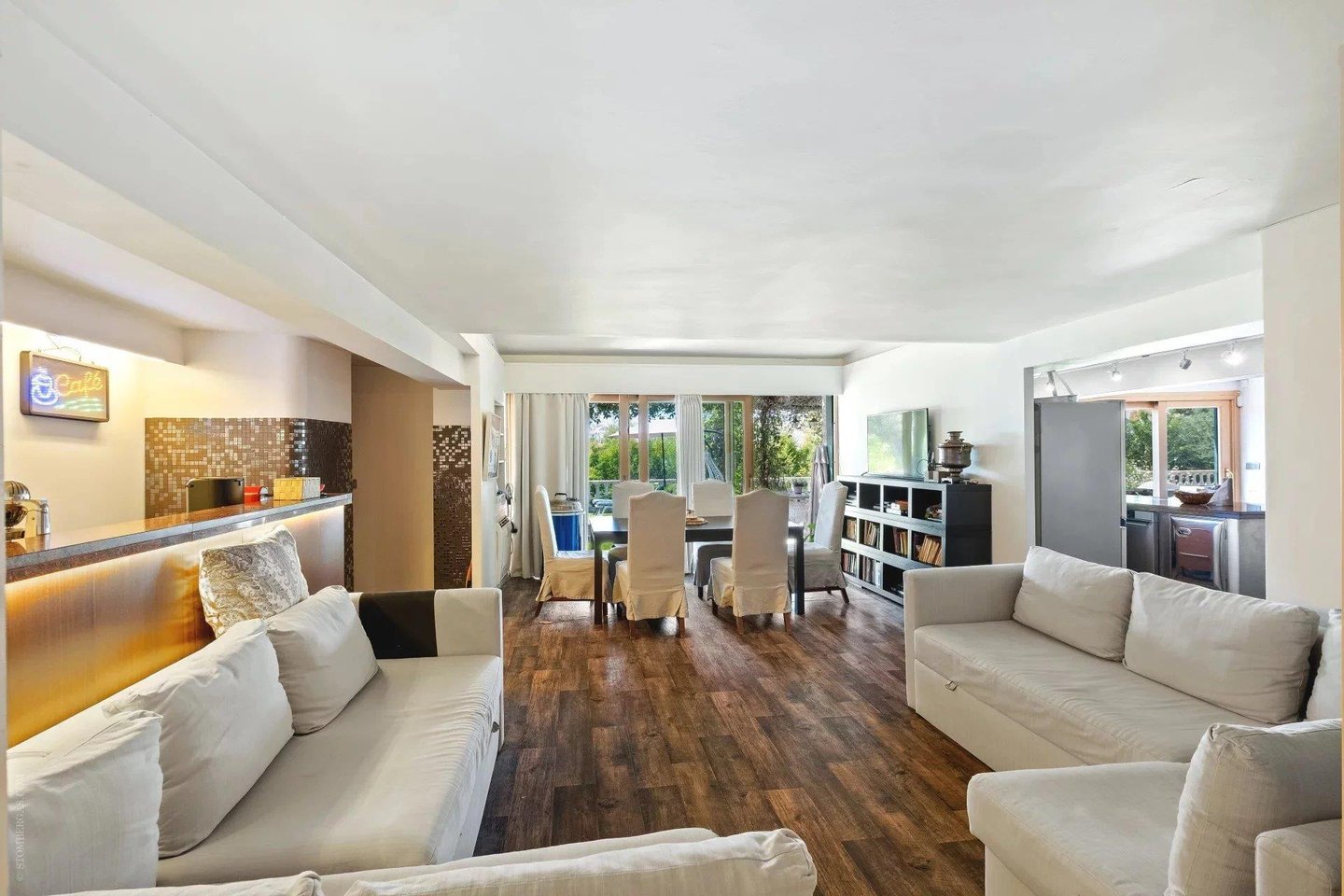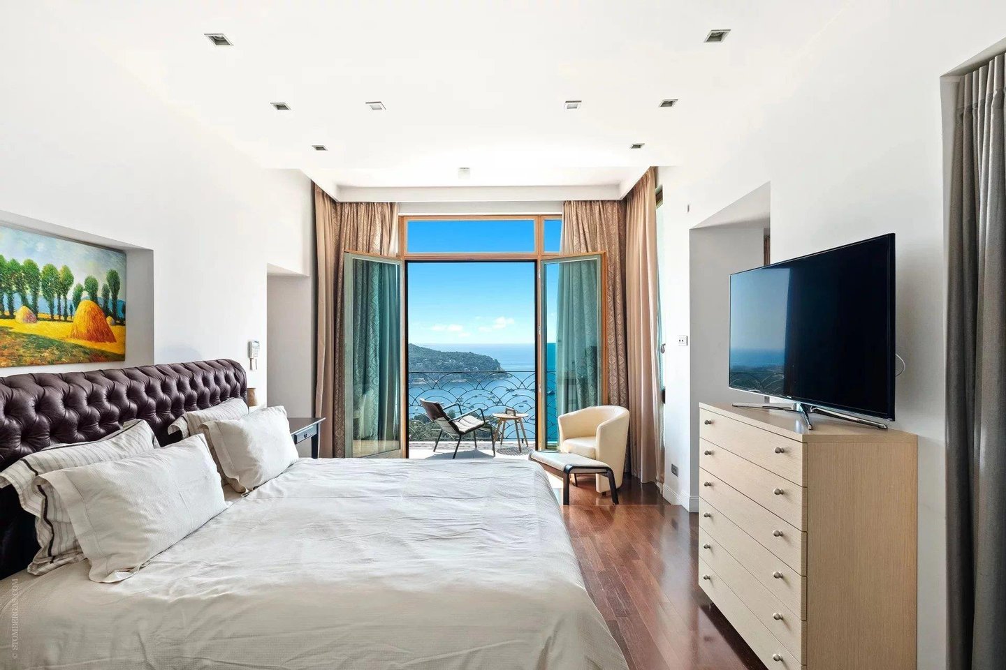 Die ca. 450 m² große Immobilie erstreckt sich über vier Ebenen, die durch einen Aufzug bedient werden. Das Anwesen liegt auf einem 1.000 m² großen Grundstück und bietet herrliche Außenbereiche: weite Terrassen, Pool, flacher 500 m² großer Garten und Solarium, um die mediterrane Sonne in vollem Umfang zu genießen.