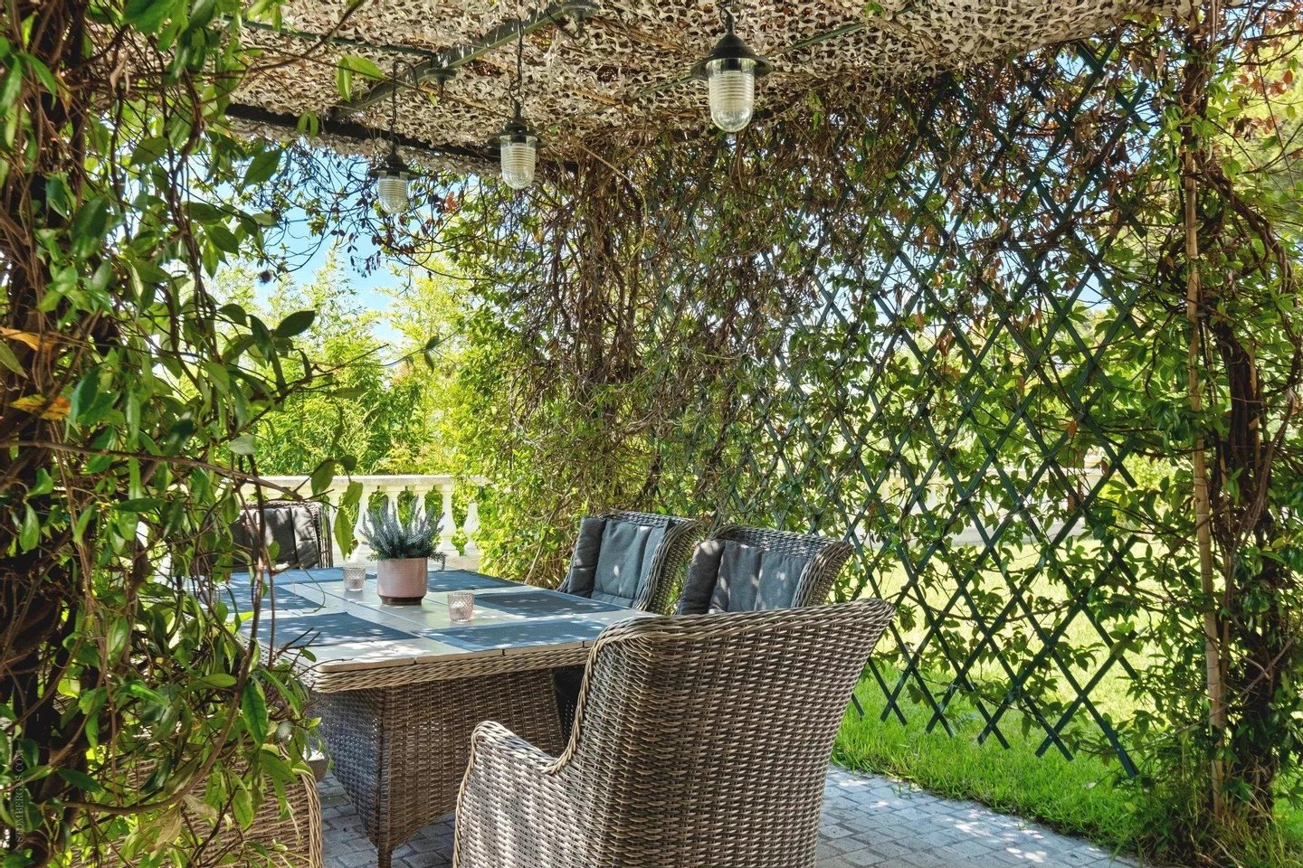 Die Villa verfügt über vier Master-Suiten, ein Salon, eine Waschküche und ein Personalzimmer. Sie wird durch eine Garage und zwei überdachte Parkplätze ergänzt und bietet Komfort pur in einem außergewöhnlichen Umfeld.