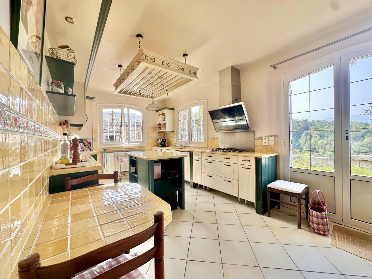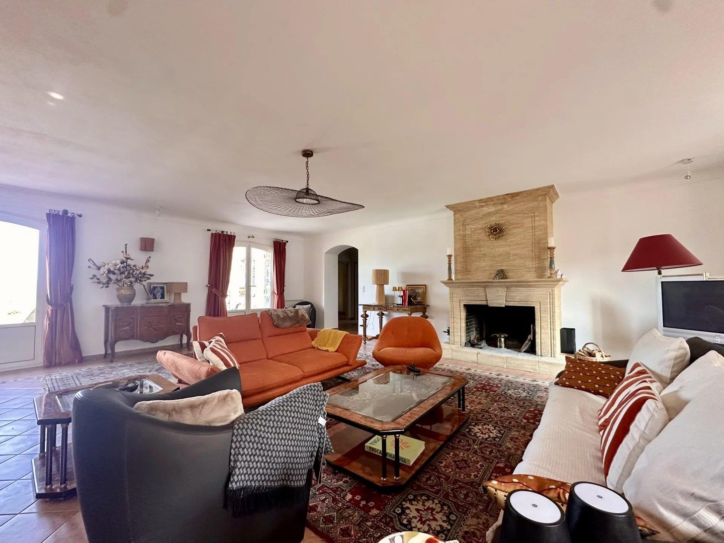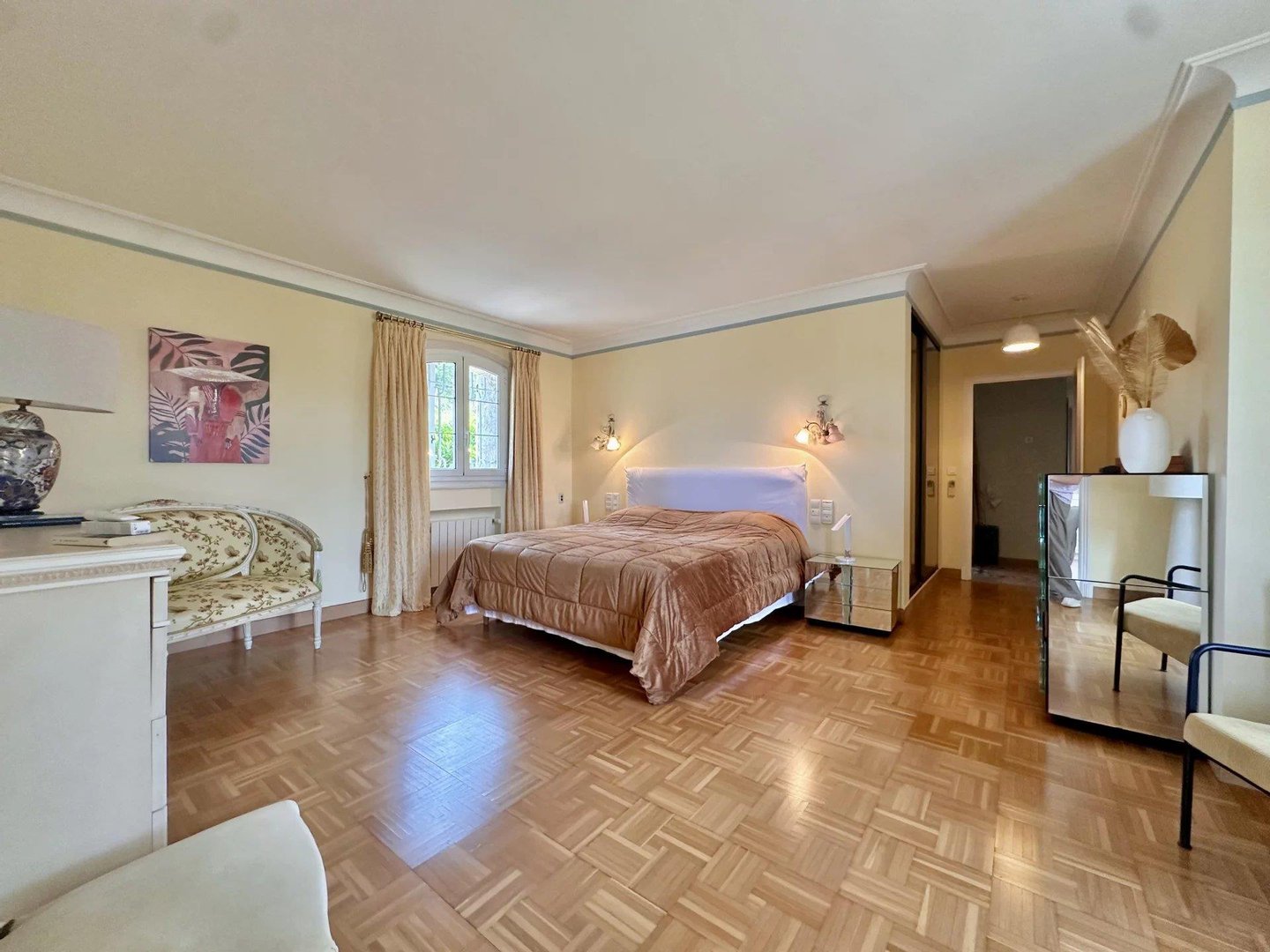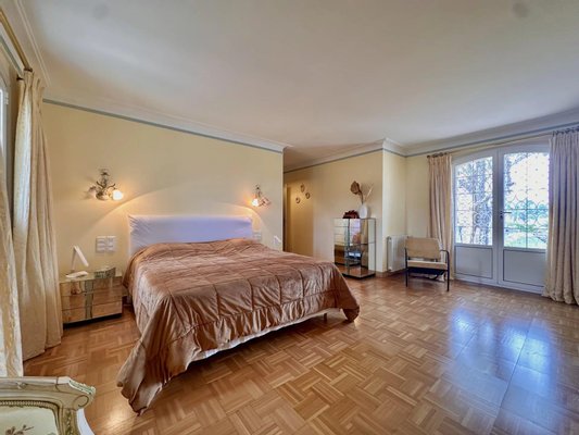 Die Villa bietet einen Panorama-Blick auf das Massiv der Gréolières sowie einen ersten Meerblick, bleibt jedoch in der Nähe des Internationalen Flughafens Cannes-Mandelieu.