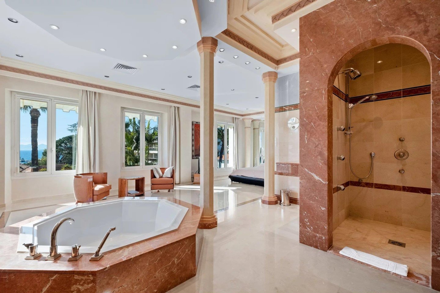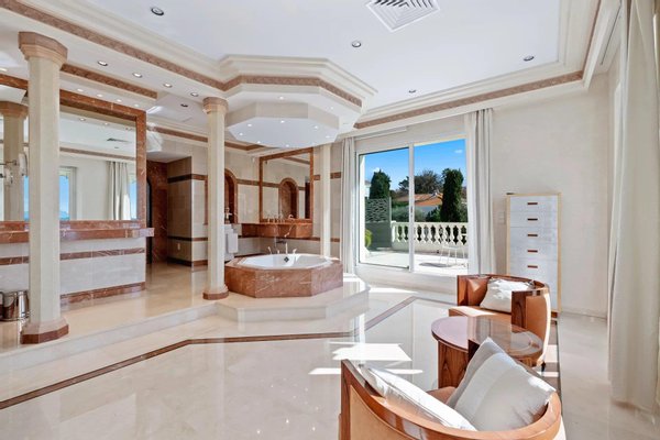 Wunderschöne Immobilie, nur wenige Schritte vom Meer und dem Port Gallice entfernt. Die eindrucksvolle Villa wurde 1901 auf einem 2410 m² großen Grundstück erbaut und bietet eine Wohnfläche von 422 m². Sie verfügt über einen Empfangsbereich, ein Doppelsogg—Wohnzimmer mit Salon, Esszimmer und Arbeitsbereich, alles mit Zugang zu einer großen Terrasse mit Meerblick. Eine maßgefertigte, eingerichtete Küche. Im Obergeschoss finden Sie ein prächtiges Hauptschlafzimmer mit Bad, Dusche und großem Ankleidezimmer. Zwei weitere Schlafzimmer en suite mit Dusche. Im unteren Teil des Hauses steht eine unabhängige Dreizimmer-Wohneinheit mit Dusche, Ankleidezimmer sowie eine eingerichtete und ausgestattete Küche. Der Außenbereich bietet einen herrlichen Pool mit Meerblick sowie ein Poolhaus. Mehrere Parkmöglichkeiten und eine Garage runden den Komfort ab.