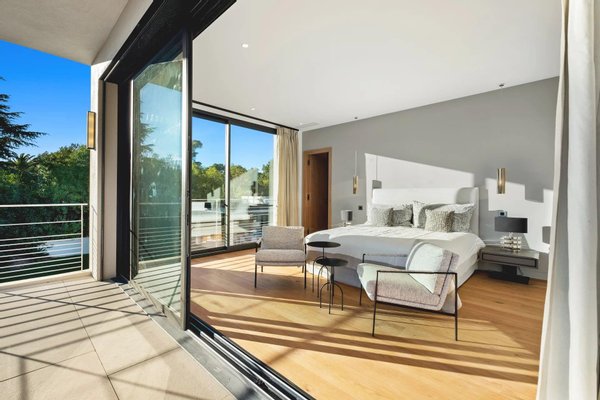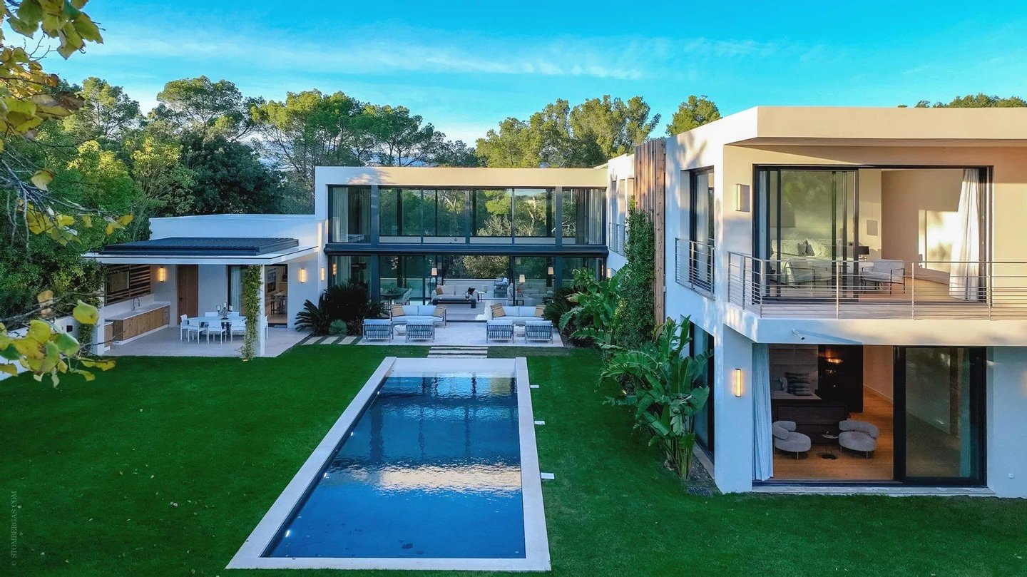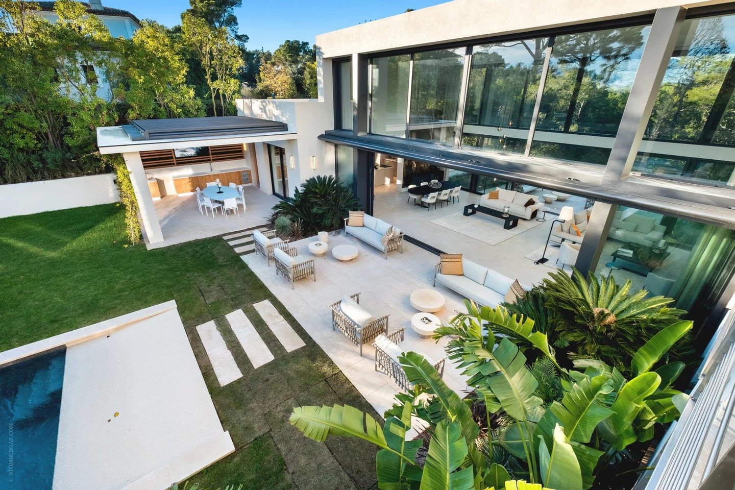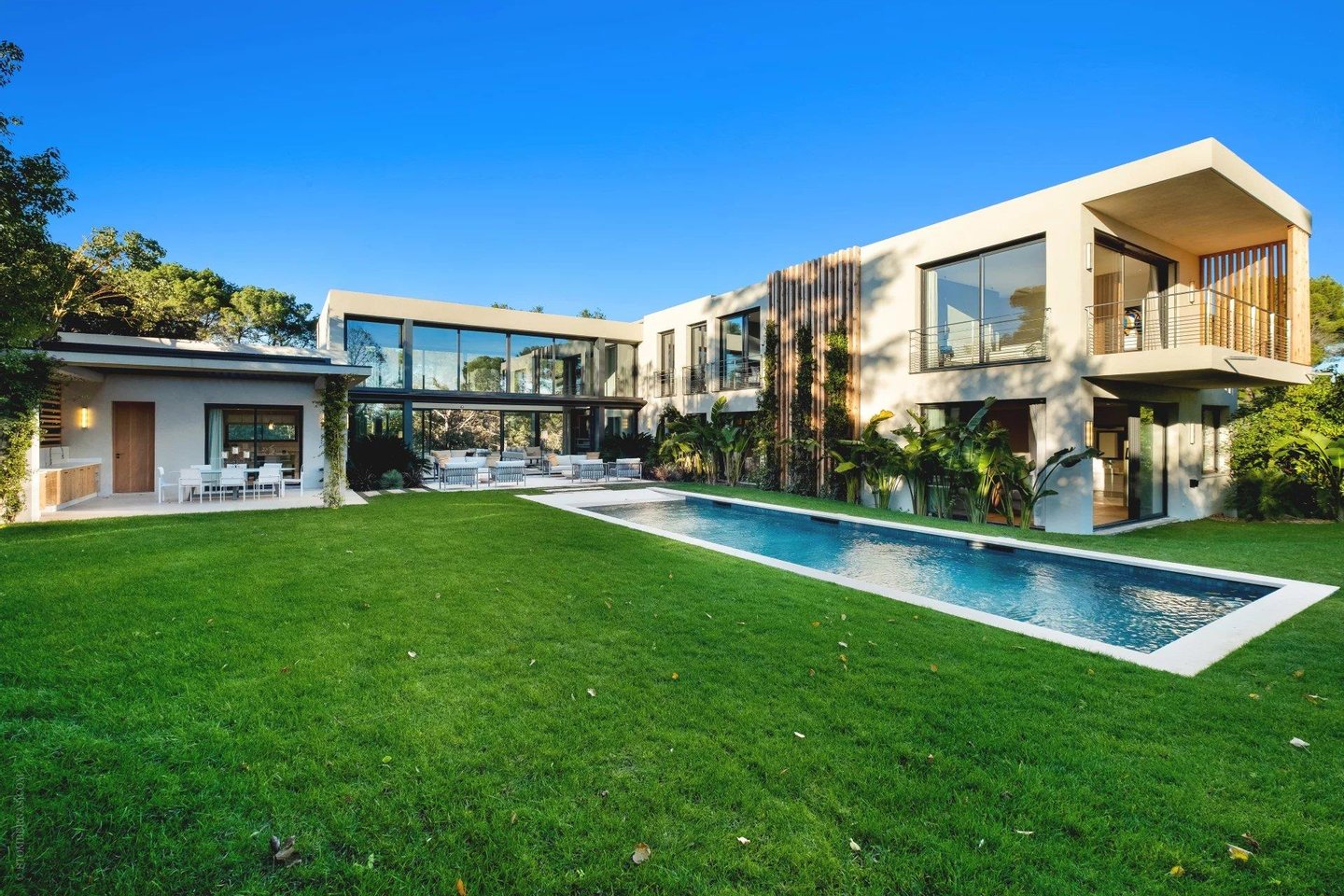 Mougins, in der begehrtesten geschlossenen Domaine der Gegend, wunderschöne neue zeitgenössische Villa. Ungefähr 700 m2 auf 2700 m2 flachem Grundstück mit Pool.