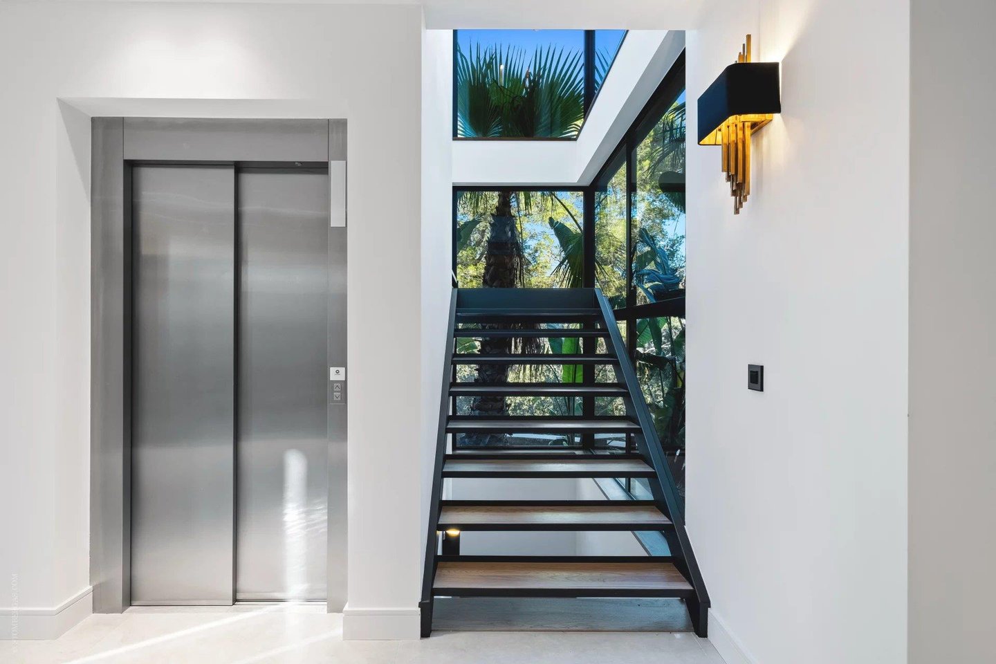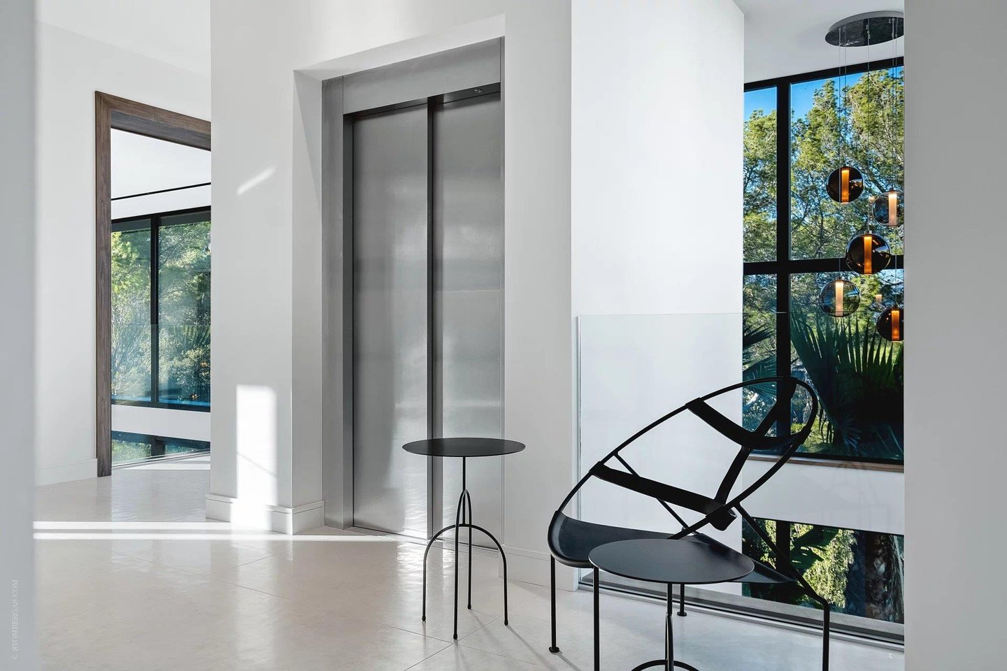 Zu ergänzen: Aufzug, Hausautomation, Heimkino, Fitnessstudio, Weinov, Hauswirtschaftsraum, Spiel-/Bar-Raum, Sauna und Garage für 6 Autos (Fitnessraum an die Garage angeschlossen).