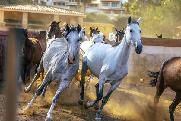 Eine majestätische andalusische Hacienda, umgeben von jahrhundertealten Olivenbäumen, handwerklicher Architektur und einem der berühmtesten reinrassigen spanischen Pferdegestüte Europas.