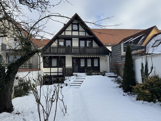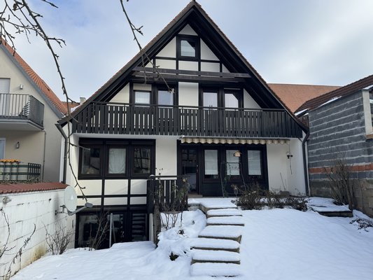Das im Jahr 1984 erbaute Einfamilienhaus mit dekorativem Zierfachwerk befindet sich in einer ruhigen Seitenstraße im Zentrum von Ebern.