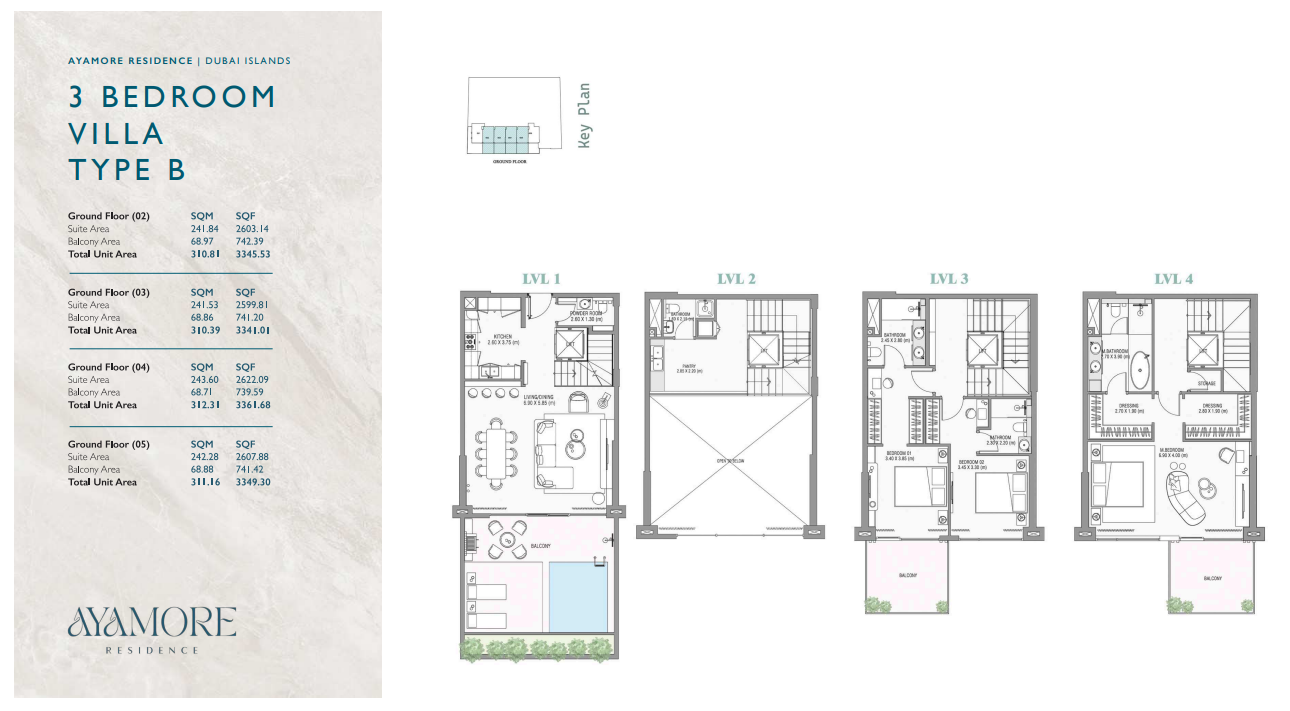 Wenn Sie diese luxuriöse Erdgeschossvilla in der Ayamore Residence von Ayat Development auf den Dubai Islands betreten, werden Sie von einem Gefühl der Eleganz und Ruhe begrüßt. Der geräumige Wohnbereich öffnet sich zu einer privaten Außenterrasse, perfekt zum Entspannen oder um Gäste zu empfangen. Die drei Schlafzimmer bieten reichlich Platz und Privatsphäre, jedes mit eigenem Bad.