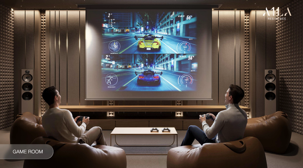 Die Outdoor-Lounge und der Sky-Pool im obersten Stockwerk bieten eine atemberaubende Aussicht und eine ruhige Atmosphäre. Die Himmels-Terrasse ist ideal für einen Cocktail bei Sonnenuntergang oder für ein kleines Treffen. Für diejenigen, die gerne Filmabende verbringen, bieten das Kino und das Spielzimmer Unterhaltungsmöglichkeiten.