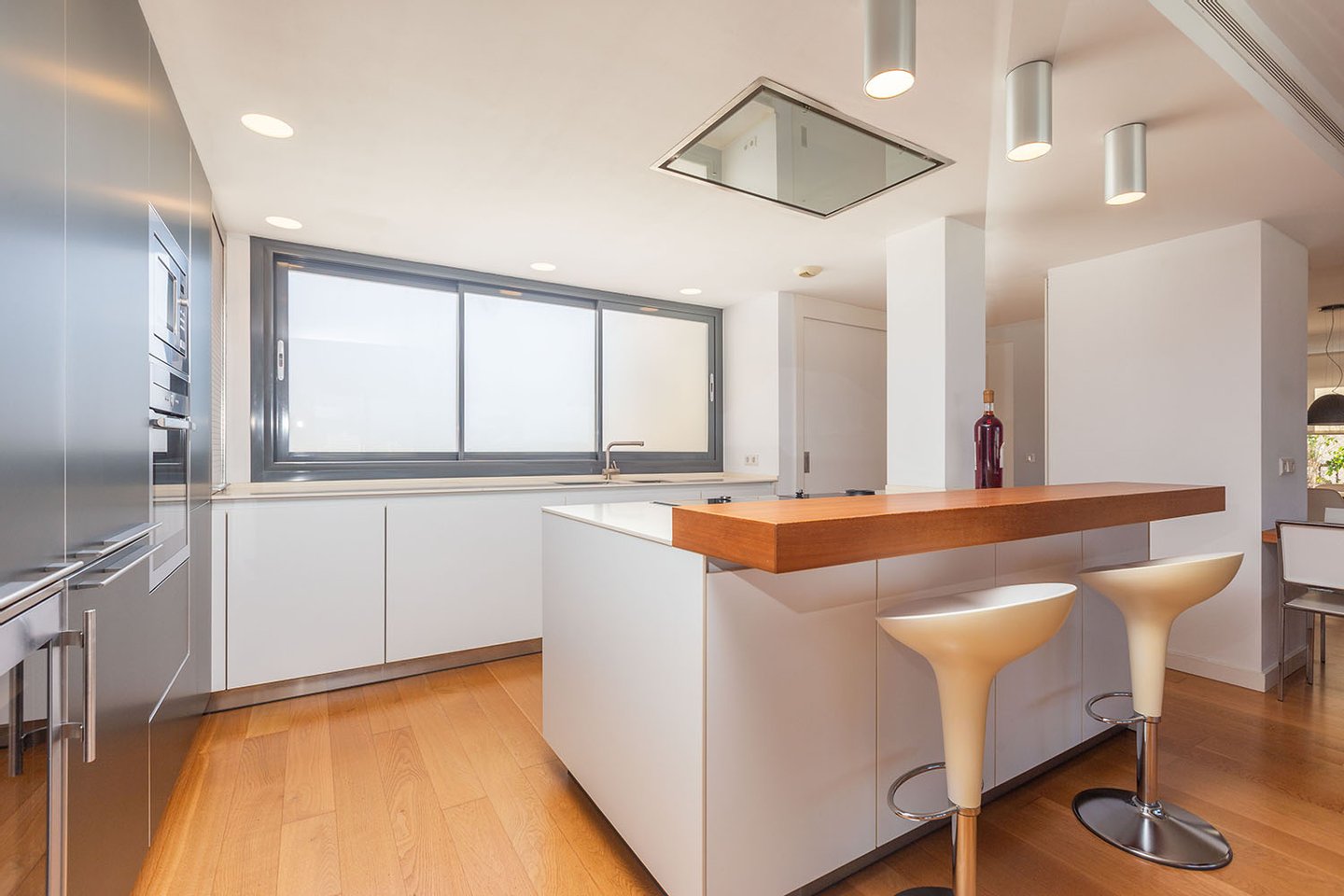Für höchsten Wohnkomfort sorgen eine Zentralheizung mit Stadtgas, Klimaanlage (warm/kalt), Sonnenkollektoren zur Warmwasseraufbereitung, ein Gas-Kamin, Beleuchtung von Flos, Foscarini und Artemide sowie Möbel von renommierten Marken wie Cassina oder Gandia Blasco sowie ein integriertes Sonos-Audiosystem.