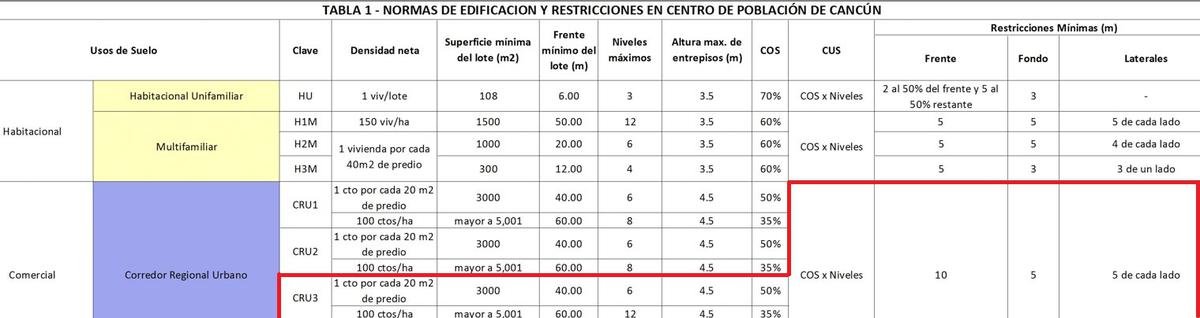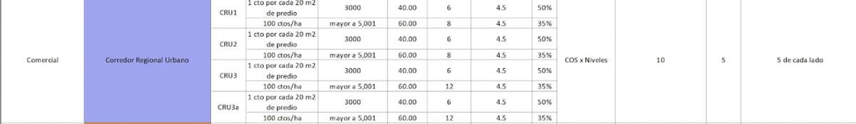 The PDU that has just been authorized in 2019 considers the properties as Commercial CR3 (Regional Urban Corridor) with the guidelines shown in the PDU in the images.