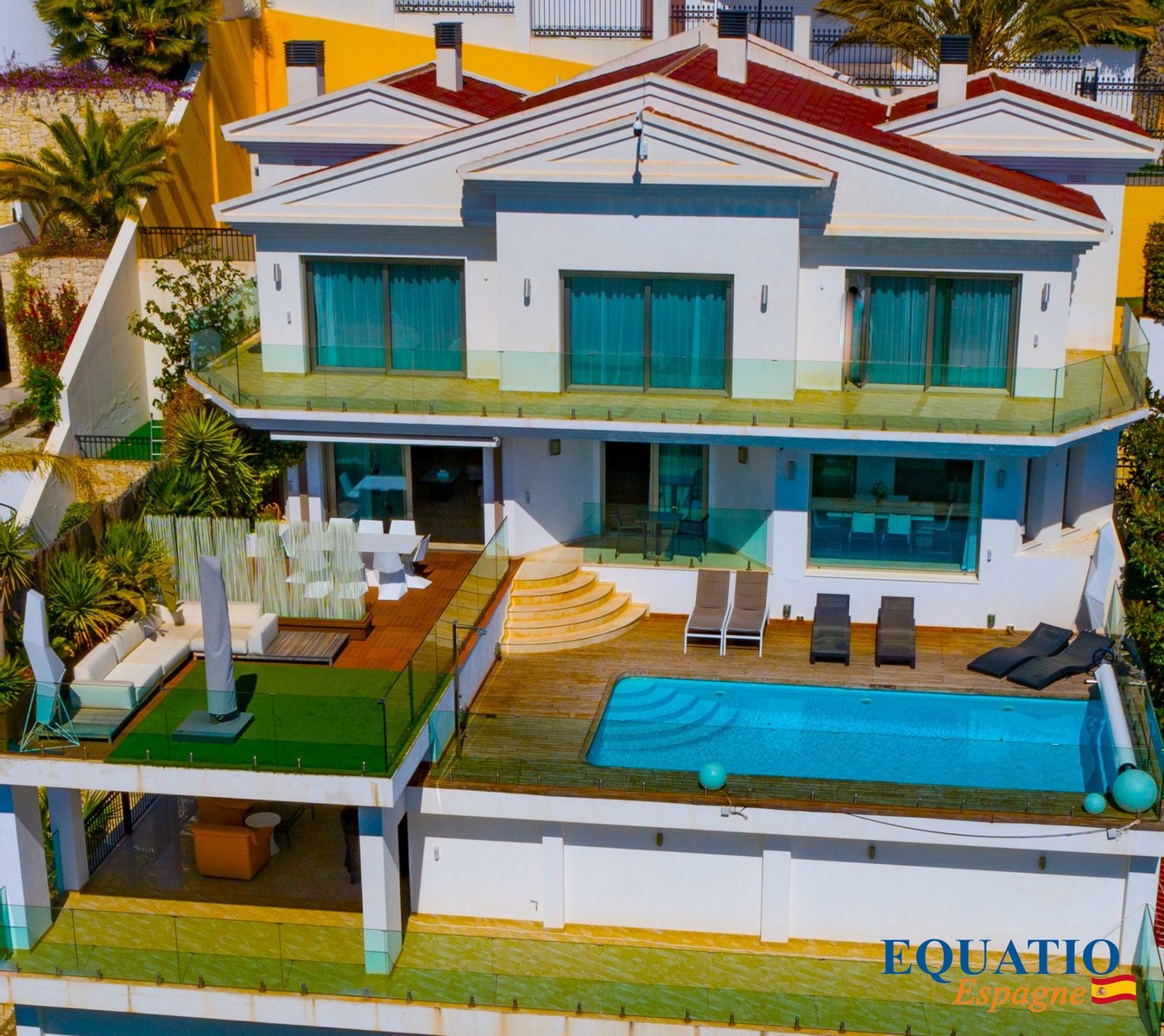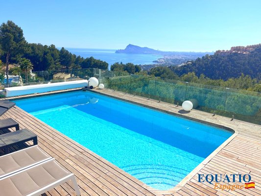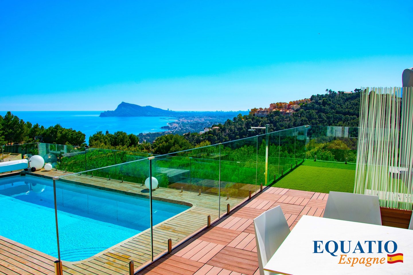 Located in the 24-hour secure area of Altea Hills, Modern villa of 650 m² of living space, with elevator . . . and a panoramic sea view Heated outdoor pool - Indoor pool - Sauna - Fitness room - and surprises . . . Large windows to make the most