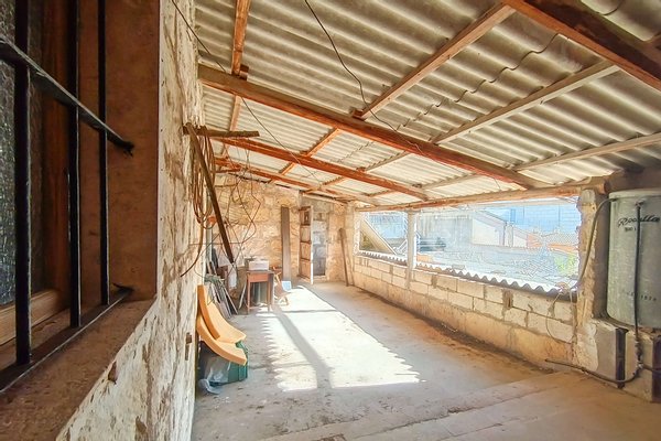Im Erdgeschoss empfängt ein großer, mallorquinischer Eingangsbereich, der den ursprünglichen Charakter des Hauses bewahrt. Auf dieser Ebene befindet sich zudem ein Schlafzimmer, ein gemütlicher Wohnraum sowie die Küche. Der weitläufige hintere offene Bereich des Hauses eignet sich hervorragend, um in eine traumhafte Terrasse oder einen mediterranen Patio umgestaltet zu werden – ein Platz mit enormem Potenzial für Genuss, Entspannung und gesellige Momente.
