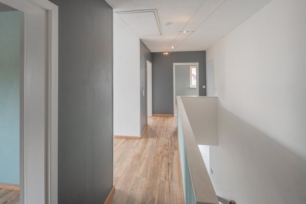 Im Erdgeschoß befindet sich die helle und großzügige Wohn-/Essküche, Arbeitszimmer, Bad, sowie ein Abstellraum. Auf der Schlafetage im Obergeschoß finden Sie das Elternschlafzimmer mit Ankleide, das Haupt- und das Kinderbad, sowie zwei Kinderzimmer.