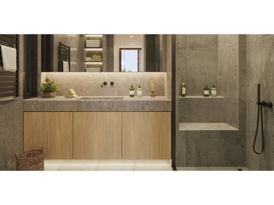 Jede Villa wurde vom renommierten Architekten António Nunes da Silva sorgfältig entworfen und verbindet zeitgenössische Ästhetik mit nachhaltigen Baupraktiken. Durch den bewussten Einsatz natürlicher Materialien und moderner Designelemente entstehen einladende und zugleich anspruchsvolle Wohnräume. Großflächige Glasfassaden durchfluten jede Villa mit natürlichem Licht und sorgen für eine harmonische Verbindung zwischen Eleganz im Inneren und Gelassenheit im Freien.