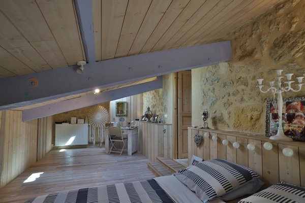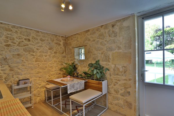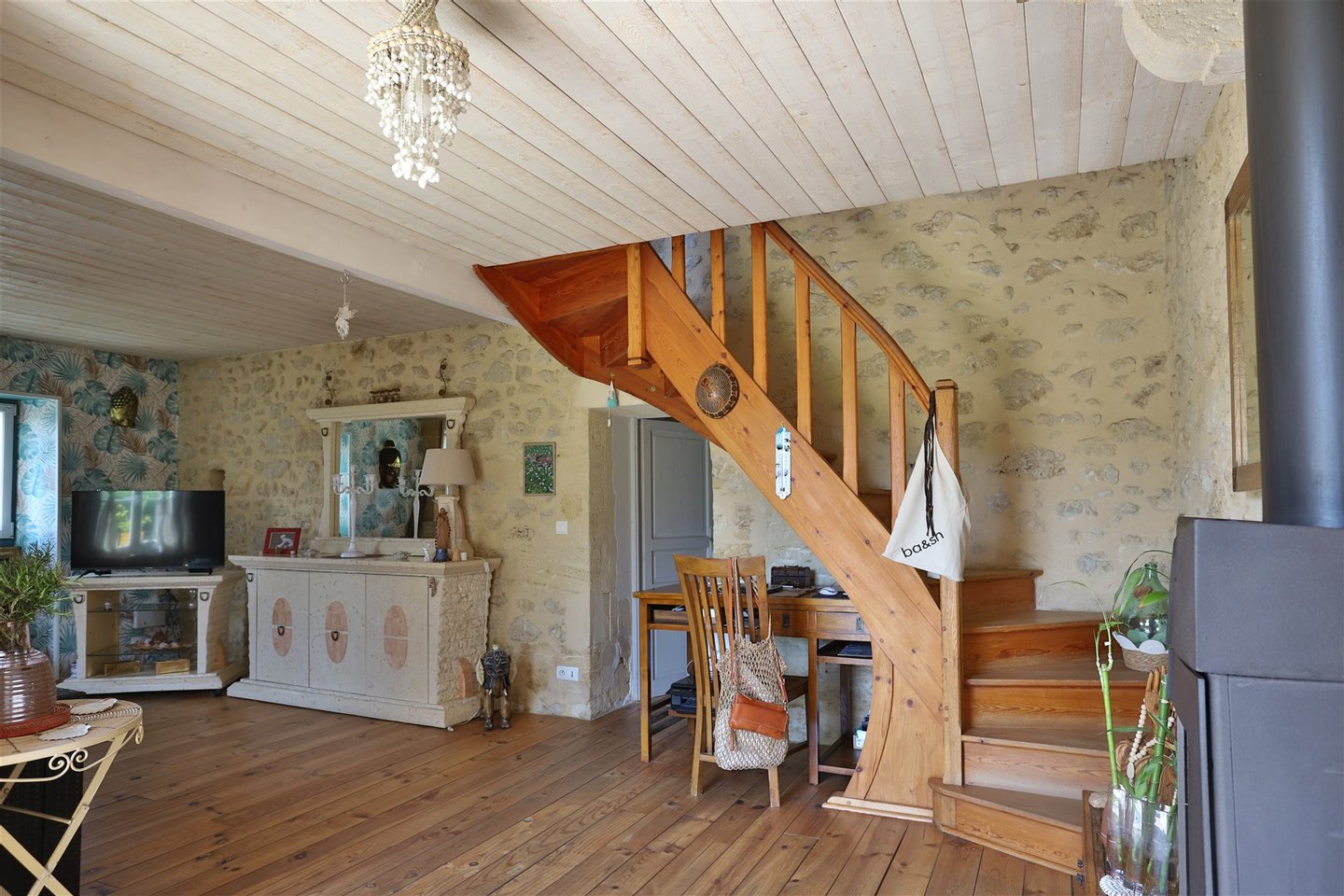 Charmantes Steinhaus, bezugsfertig, eingebettet in eine ruhige und geschützte Umgebung. Von der Liegenschaft aus genießen Sie einen uneingeschränkten Blick auf den Garten und die umliegenden, wunderschönen Landschaften. Im Erdgeschoss öffnet sich ein großzügiges, warmes Wohnzimmer mit einem Steinkamin und einem eigenständigen Ofen. Die Küche mit Essecke, geräumig und lichtdurchflutet, ist mit einem Pellet‑Ofen ausgestattet, der Komfort und Moderne bringt. Eine Waschküche ergänzt diese Etage. Ein unabhängiger Teil, sowohl von innen als auch von außen zugänglich, bietet schöne Möglichkeiten: Er umfasst ein Schlafzimmer, ein Bad sowie eine kitchenette mit Essbereich, perfekt um Familie zu empfangen oder als Gästezimmer zu nutzen. Im Obergeschoss finden sich zwei Schlafzimmer, ein Badezimmer sowie ein Dachboden-Schlafraum unter dem Dach, der die Räume intelligent ausnutzt. Das Ensemble bietet harmonische und funktionale Flächen. Draußen sorgt der sorgfältig gepflegte Garten mit zahlreichen Bäumen für eine wahre grüne Oase. Er verfügt außerdem über einen Holzschuppen und einen Pool (9 x 4 m). Nur wenige Minuten von Einkaufsmöglichkeiten entfernt und in der Nähe von Saint-Émilion, seinem Golfplatz und dem Bahnhof gelegen, verbindet dieses Haus Ruhe, Charme und Zugänglichkeit perfekt.