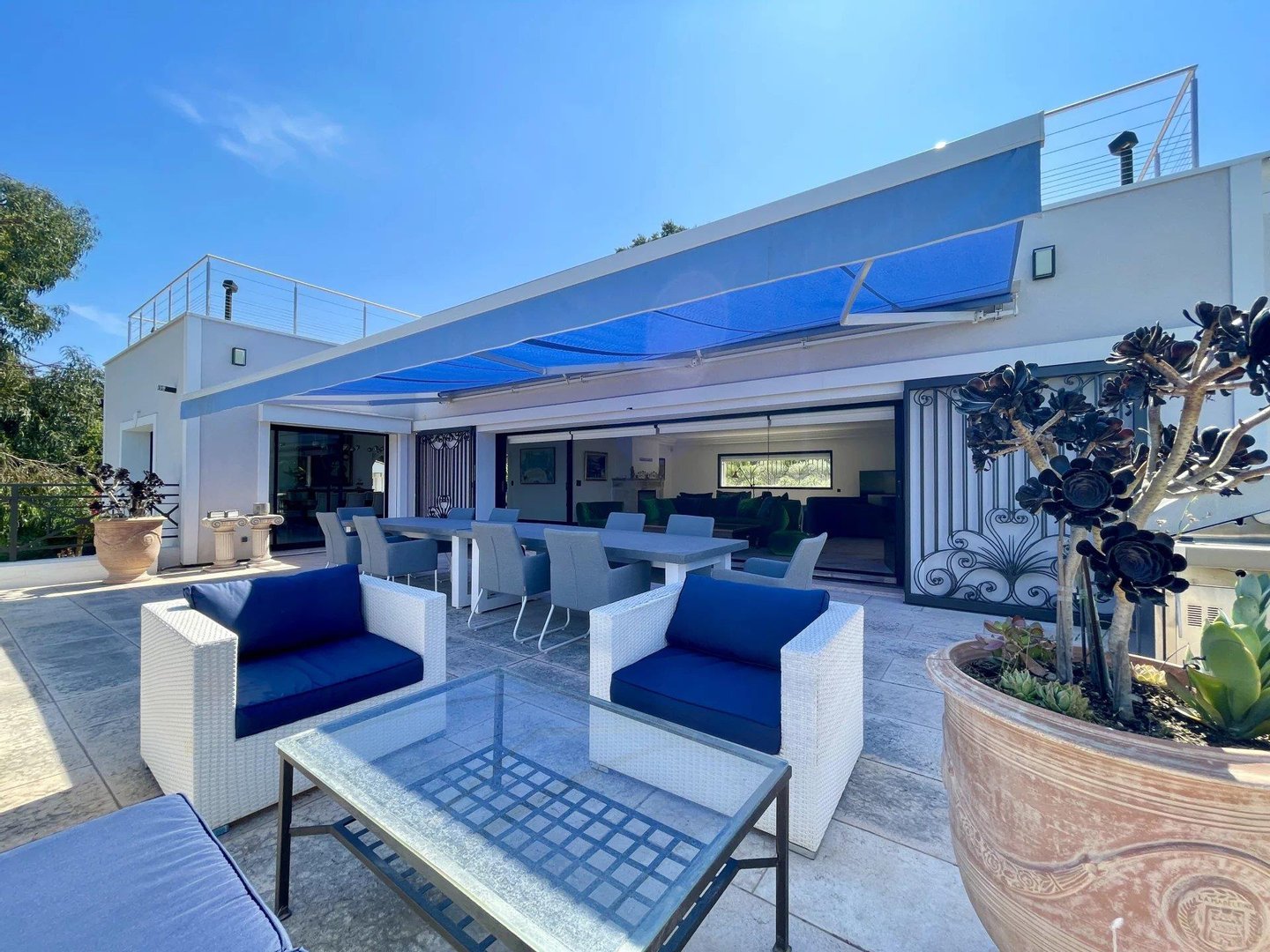 Exklusiv, off-market in Cannes. Diese Art-Déco-Villa liegt auf einem hübschen Grundstück mit Obstbäumen und provenzalisch gefüllten Blumen und bietet einen herrlichen Meerblick sowie Sonnenschein von morgens bis abends. Mit einer insgesamt bebauten Fläche von 600 m2, inklusive Haupthaus und Anbauten, verfügt sie über: 9 Schlafzimmer insgesamt. Darunter 5 Schlafzimmer im Hauptgebäude, ermöglicht durch ein architektengeprägtes Projekt, ein hervorragender Empfangsbereich mit Wohnzimmer und Kamin, separater Speisezimmer oder Öffnung zum Wohnzimmer je nach Wunsch dank einer Schiebetür aus Glas, die zu einer großzügigen Terrasse führt. Küche mit Servicezugang, Wäscherei und Videoüberwachungsraum. Unterbringung für ein Hausmeisterpaar mit separatem Zugang, Studio und Gästevilla. SPA-Raum mit Sauna und Hamam. Jacuzzi und beheizter Salzwasserpool (12x6). Und um ein privilegiertes und komfortables Wohnumfeld abzurunden, eine Sommerküche auf Poolebene mit großem Speisebereich unter einer Laube.