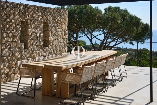 Nestled within a private estate overlooking the water, this 347 sq m villa, set on a 3,136 sq m plot, perfectly blends Provençal authenticity with contemporary elegance in a natural setting facing the sea. Perched in a commanding position, the house