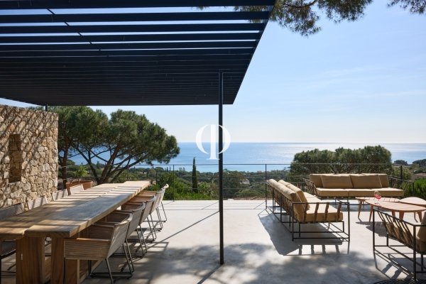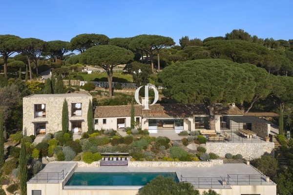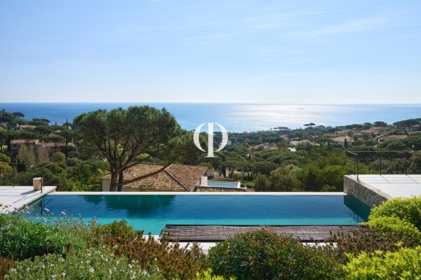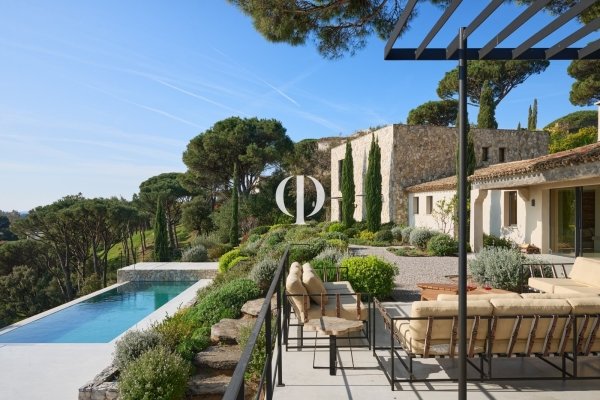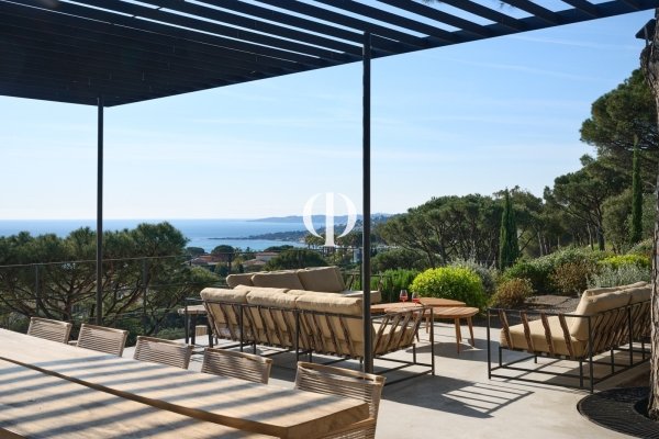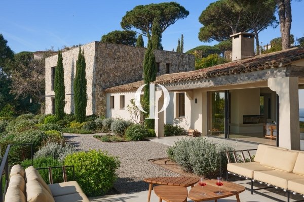 Nestled within a private estate overlooking the water, this 347 sq m villa, set on a 3,136 sq m plot, perfectly blends Provençal authenticity with contemporary elegance in a natural setting facing the sea. Perched in a commanding position, the house boasts distinctive architecture where local stone walls interact with cleaner lines. The living spaces are arranged around a landscaped Mediterranean garden, composed of native species, terraced gardens, and umbrella pines, creating an atmosphere that is both secluded and refined. The panoramic sea view stretches to the horizon, offering a constant spectacle from the living room and bedrooms. Extending from the garden, the swimming pool blends discreetly into the landscape, preserving privacy. Inside, the large living room with its fireplace forms the warm heart of the villa. Opening onto the garden, it benefits from abundant natural light and a seamless connection between indoors and outdoors. Natural materials-stone, wood, and warm-toned plasterwork-create an inviting, elegant, and timeless atmosphere. The property offers five bedrooms as well as a separate two-bedroom annex, providing ample space for family and guests. Every space has been designed to combine comfort, privacy, and a relaxed lifestyle. A garage and parking areas discreetly complete the ensemble. This villa, both a charming home and a luxurious residence, perfectly embodies the sought-after art of living on the French Riviera: a subtle balance between authenticity, modernity, and the sea, all within a privileged setting overlooking the sea.
