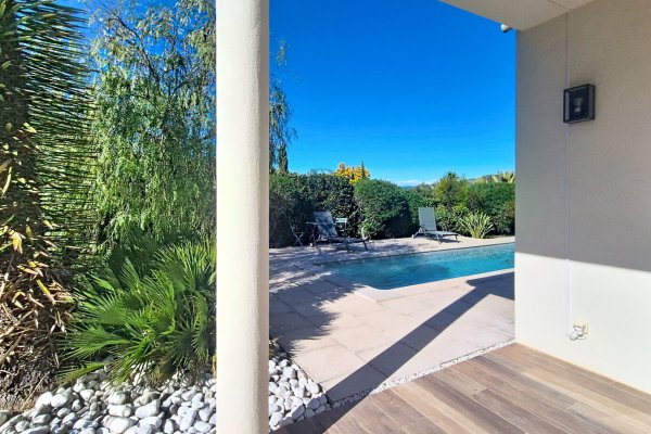 BERSAN Immobilier bietet Ihnen diese prächtige, zeitgenössische Villa an, die in einem bewachten und bewachten Gelände liegt, unmittelbar in der Nähe von Golfplätzen und zu Fuß erreichbar zu Geschäften