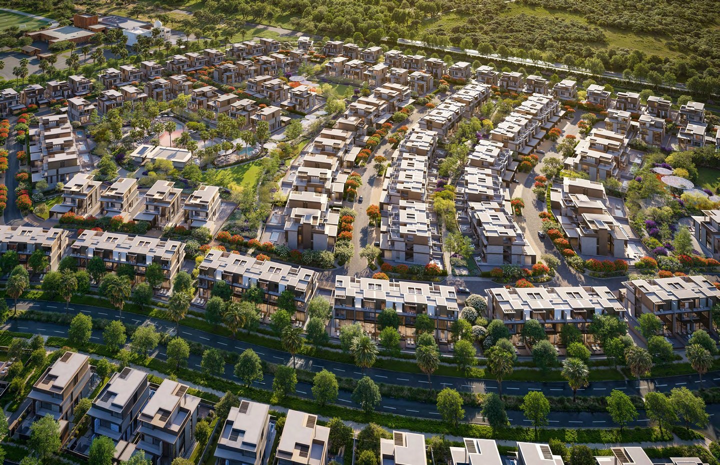This gated enclave blends clean contemporary lines with natural greenery, bronze metallic screens, and expansive glass façades — creating homes that feel bright, open, and effortlessly elegant.