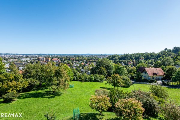 Die Liegenschaft befindet sich in leichter Hanglage, wodurch sich von den zwei Balkonen ein atemberaubender Blick über Graz sowie zur Kirche St. Johann und Paul eröffnet. Im Jahr 1967 wurde es durch einen Zubau mit südseitig ausgerichteter Terrasse und separatem Eingang erweitert.
