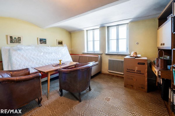 Der Altbau besticht durch seine großzügige Raumaufteilung: Sieben Zimmer, ein Abstellraum, zwei WCs und ein Badezimmer schaffen viel Raum für Familie, Hobbys und Homeoffice. Durchgänge im Erdgeschoss und Obergeschoss verbinden den Altbau nahtlos mit dem Zubau – ideal für alle, die Flexibilität und Offenheit im Wohnkonzept schätzen.